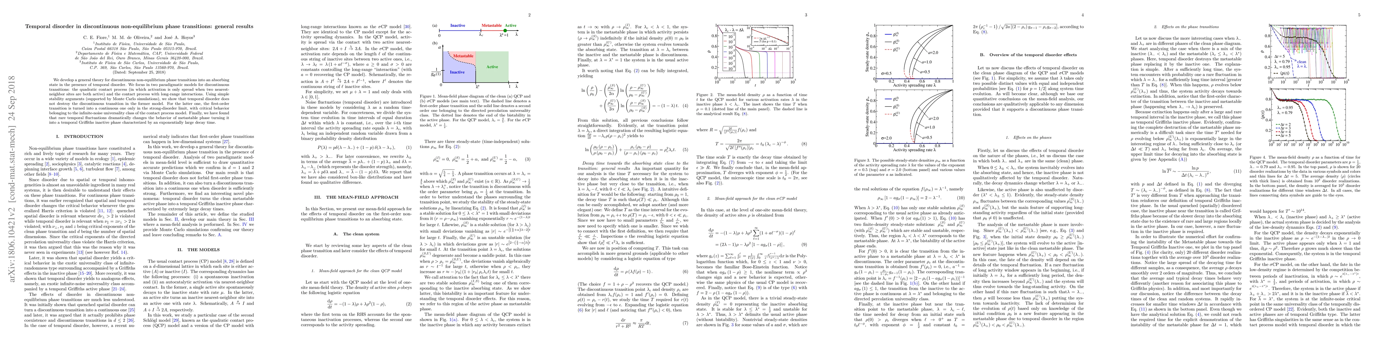 This paper develops a general theory for discontinuous non-equilibrium phase transitions in absorbing states under temporal disorder, showing that such disorder does not disrupt transitions in the quadratic contact process but transforms first-order transitions in long-range contact processes into continuous ones, with critical behavior characterized by infinite-noise universality.