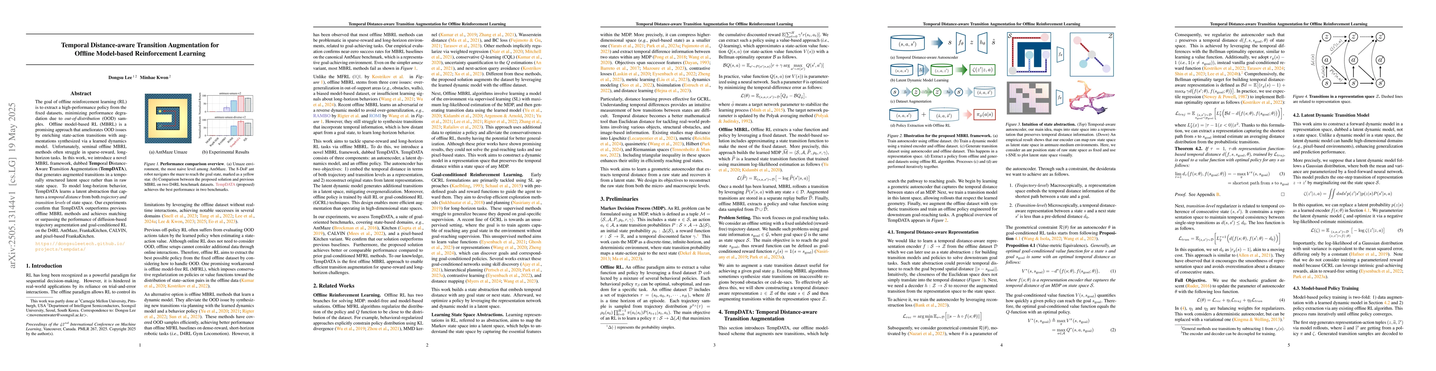 The research introduces Temporal Distance-Aware Transition Augmentation (TempDATA), an MBRL framework that models long-horizon behavior by learning a latent abstraction capturing temporal distance at both trajectory and transition levels in state space, operating in a temporally structured latent space rather than raw state space.