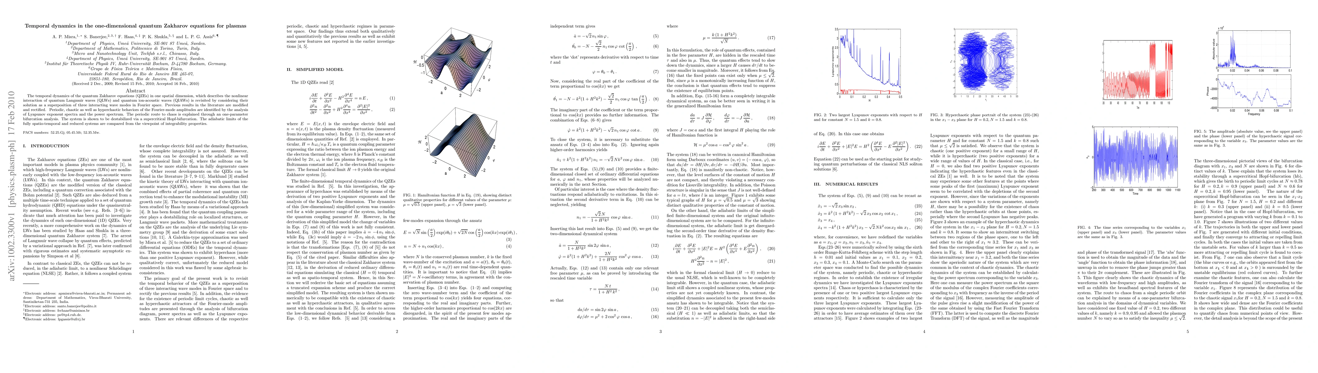 The paper revisits the temporal dynamics of quantum Zakharov equations in one dimension, revealing periodic, chaotic, and hyperchaotic behaviors through analysis of Lyapunov exponent spectra and power spectra. It also explains a route to chaos via an one-parameter bifurcation analysis and shows the system's instability via a supercritical Hopf-bifurcation.