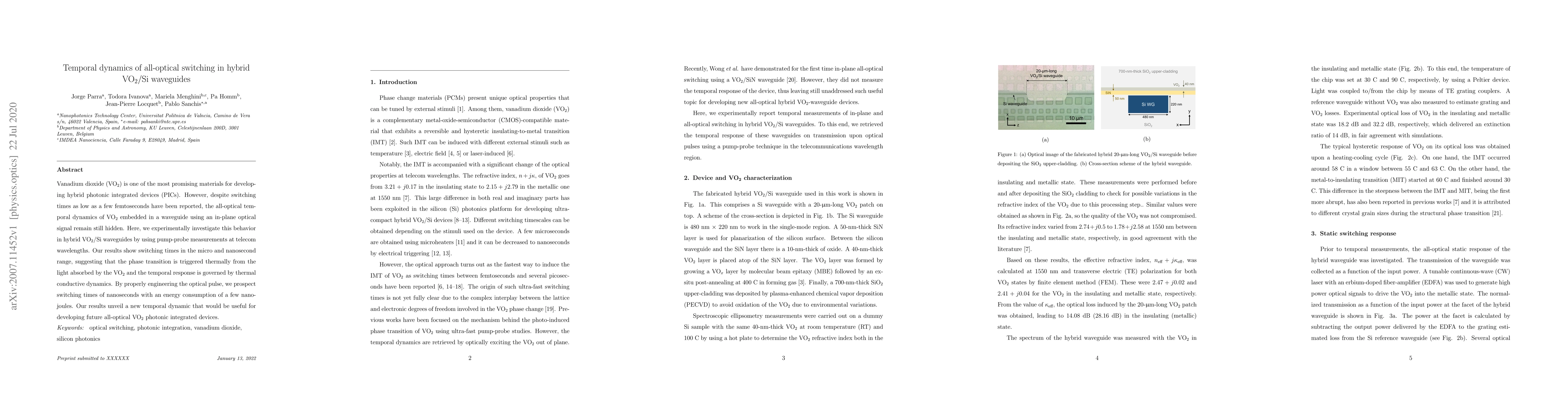 This research investigates the temporal dynamics of all-optical switching in hybrid VO2/Si waveguides, revealing switching times in the micro and nanosecond range governed by thermal conductive dynamics. The study suggests that optimized optical pulses could achieve nanosecond switching with minimal energy consumption, paving the way for future photonic integrated devices.