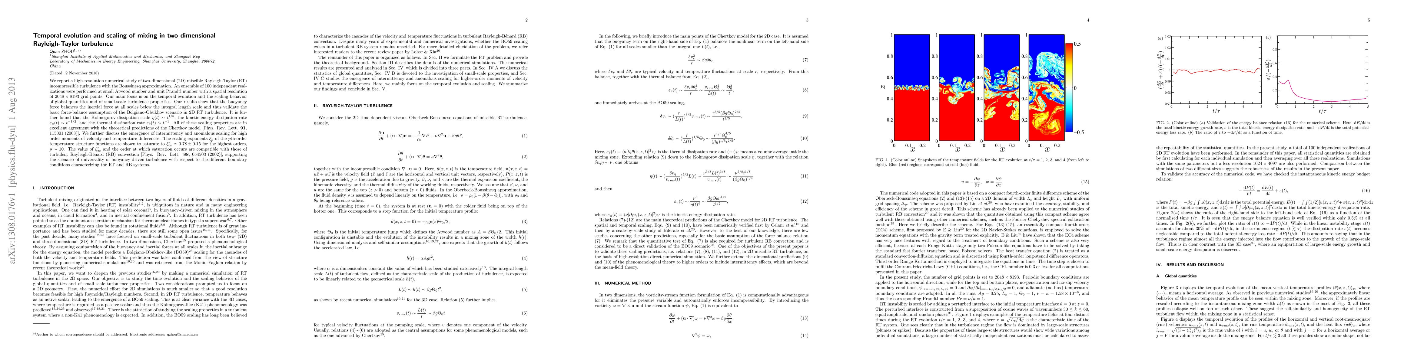 This study investigates the temporal evolution and scaling behavior of two-dimensional Rayleigh-Taylor turbulence using high-resolution numerical simulations. The results confirm the force-balance assumption of the Bolgiano-Obukhov scenario and validate the Chertkov model's theoretical predictions, including the scaling of dissipation scales and energy dissipation rates.