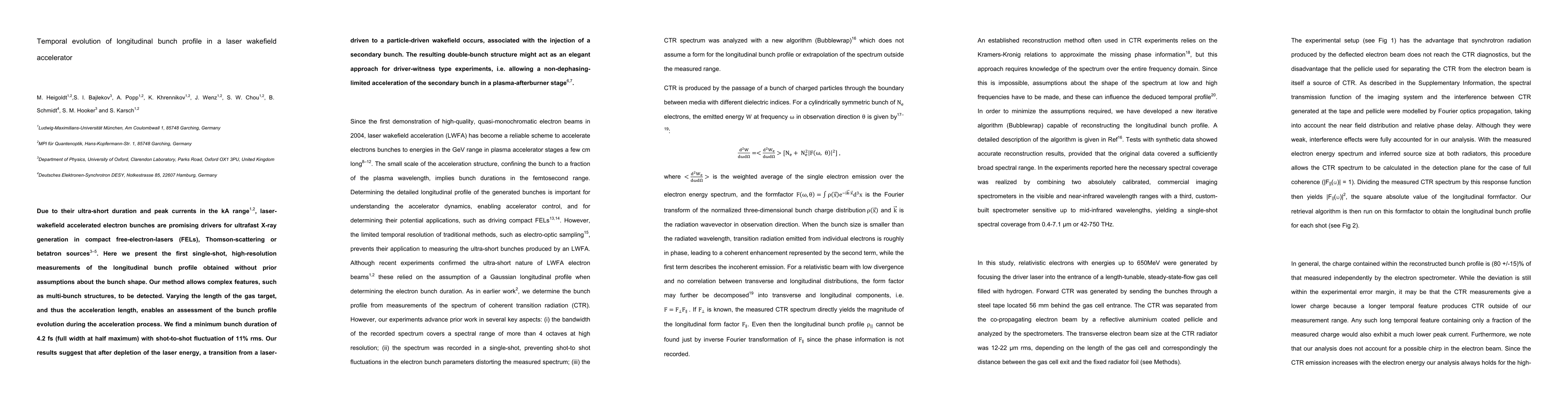 Researchers measured the longitudinal bunch profile of laser-wakefield accelerated electrons for the first time, finding a minimum duration of 4.2 fs with shot-to-shot fluctuation, and identifying a transition to a secondary bunch after depletion of laser energy.