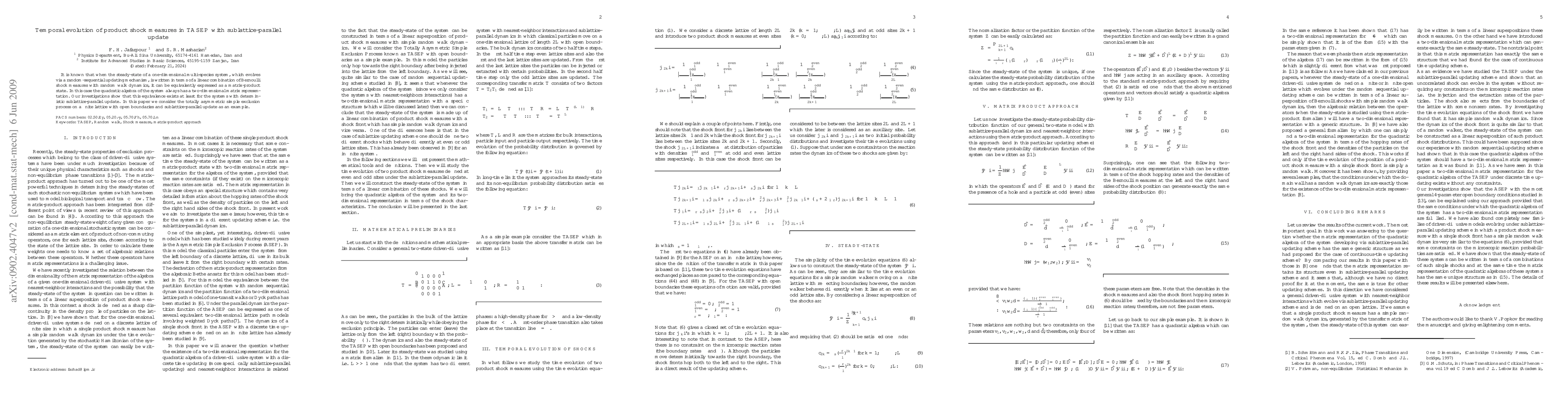 It is known that when the steady state of a one-dimensional multispecies system, which evolves via a random-sequential updating mechanism, is written in terms of a linear combination of Bernoulli shock measures with random-walk dynamics, it can be equivalently expressed as a matrix-product state. In this case the quadratic algebra of the system always has a two-dimensional matrix representation. Our investigations show that this equivalence exists at least for the systems with deterministic sublattice-parallel update. In this paper we consider the totally asymmetric simple exclusion process on a finite lattice with open boundaries and sublattice-parallel update as an example.