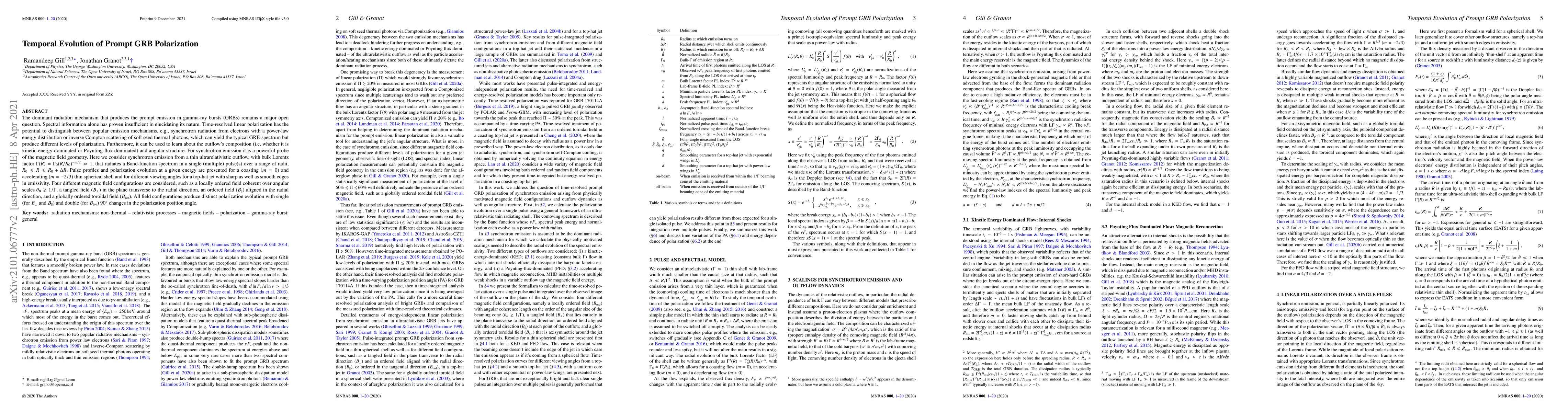 The dominant radiation mechanism that produces the prompt emission in gamma-ray bursts (GRBs) remains a major open question. Spectral information alone has proven insufficient in elucidating its nature. Time-resolved linear polarization has the potential to distinguish between popular emission mechanisms, e.g., synchrotron radiation from electrons with a power-law energy distribution or inverse Compton scattering of soft seed thermal photons, which can yield the typical GRB spectrum but produce different levels of polarization. Furthermore, it can be used to learn about the outflow's composition (i.e. whether it is kinetic-energy-dominated or Poynting-flux-dominated) and angular structure. For synchrotron emission it is a powerful probe of the magnetic field geometry. Here we consider synchrotron emission from a thin ultrarelativistic outflow, with bulk Lorentz factor $\Gamma(R)=\Gamma_0(R/R_0)^{-m/2}\gg1$, that radiates a Band-function spectrum in a single (multiple) pulse(s) over a range of radii, $R_0\leq R\leq R_0+\Delta R$. Pulse profiles and polarization evolution at a given energy are presented for a coasting ($m=0$) and accelerating ($m=-2/3$) thin spherical shell and for an off-axis top-hat jet with sharp as well as smooth edges in emissivity. Four different magnetic field configurations are considered, such as a locally ordered field coherent over angular scales $\theta_B\gtrsim1/\Gamma$, a tangled field ($B_\perp$) in the plane transverse to the radial direction, an ordered field ($B_\parallel$) aligned in the radial direction, and a globally ordered toroidal field ($B_{\rm tor}$). All field configurations produce distinct polarization evolution with single (for $B_\perp$ and $B_\parallel$) and double (for $B_{\rm tor}$) $90^\circ$ changes in the polarization position angle.