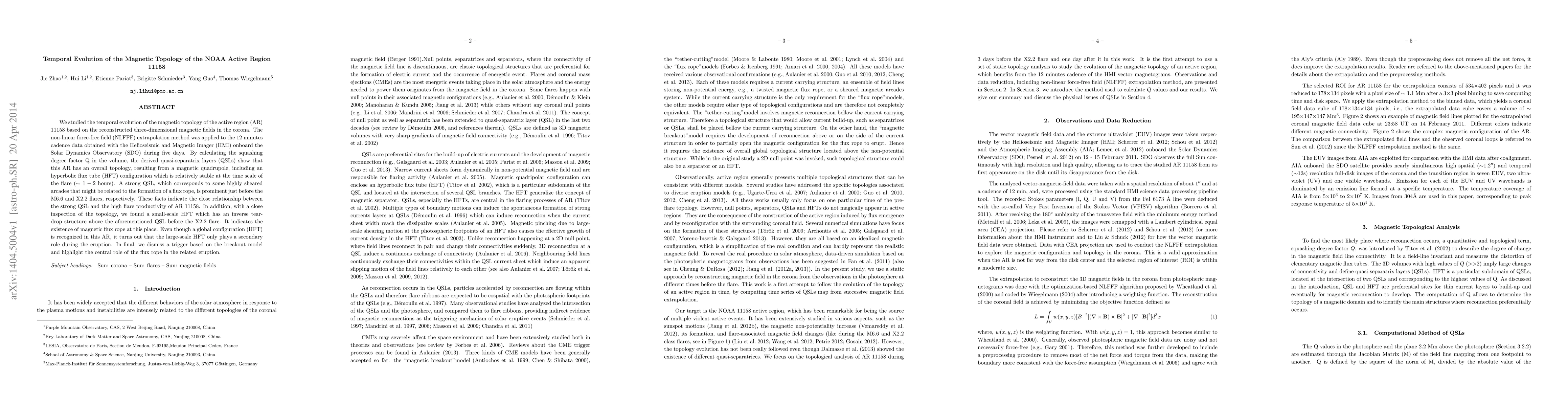 This study investigates the magnetic topology evolution of NOAA Active Region 11158 using 3D magnetic field data from the SDO/HMI over five days, revealing a stable quadrupole configuration and a strong quasi-separatrix layer linked to high flare productivity. The analysis emphasizes the central role of a flux rope in the eruption rather than a breakout mechanism.