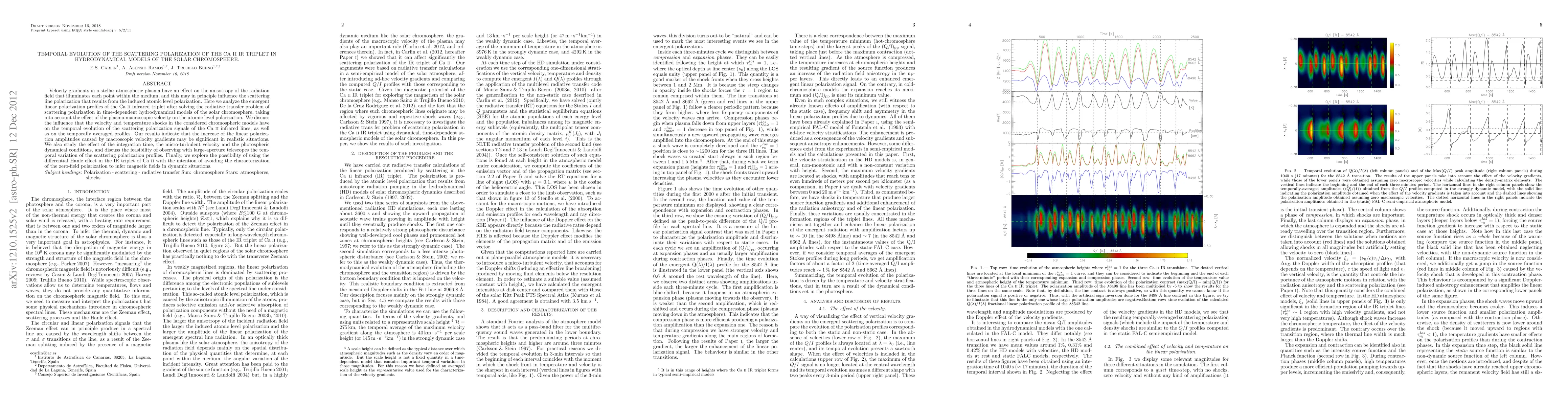 This study investigates the temporal evolution of the scattering polarization of the Ca II infrared triplet in solar chromosphere models, revealing significant increases in linear polarization due to macroscopic velocity gradients. The research also explores the influence of velocity and temperature shocks, integration time, and microturbulent velocity, and suggests using the differential Hanle effect to infer magnetic fields in dynamic conditions.