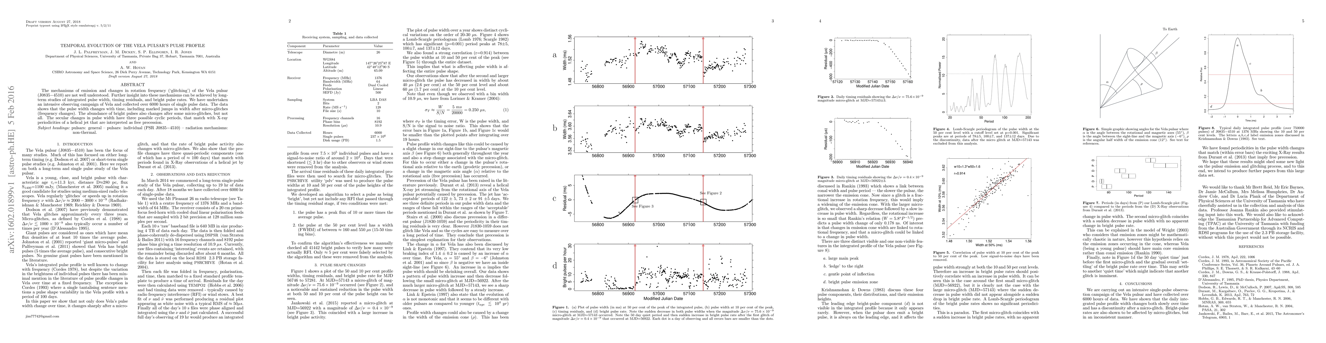 A long-term study of the Vela pulsar found that its pulse width changes over time, with periodic jumps in width after micro-glitches, suggesting a possible connection to X-ray periodicities from a helical jet.
