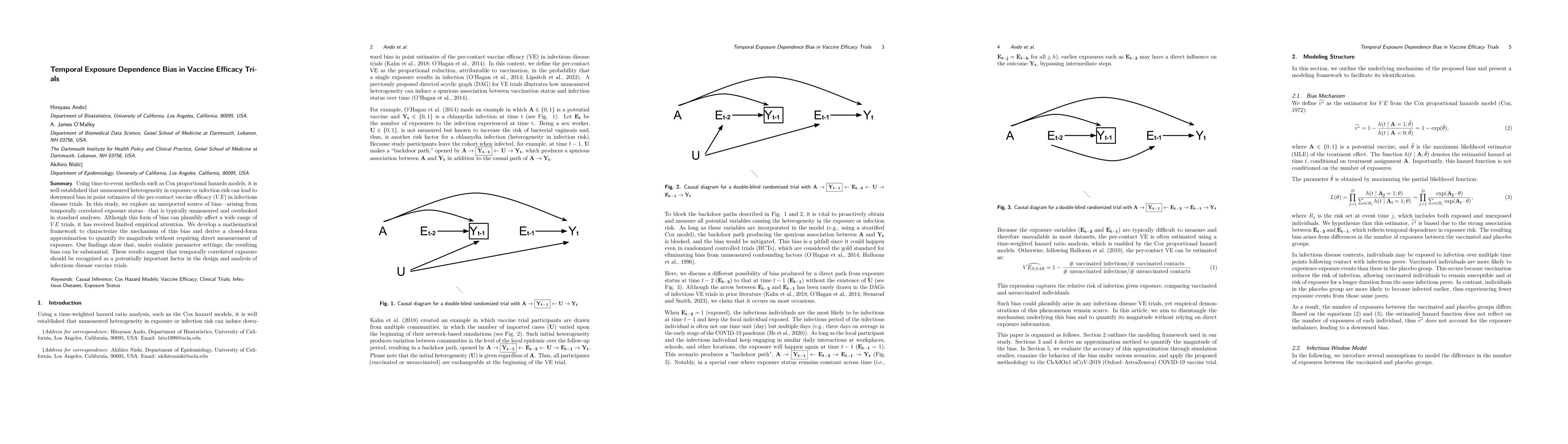 Using time-to-event methods such as Cox proportional hazards models, it is well established that unmeasured heterogeneity in exposure or infection risk can lead to downward bias in point estimates of the per-contact vaccine efficacy (VE) in infectious disease trials. In this study, we explore an unreported source of bias-arising from temporally correlated exposure status-that is typically unmeasured and overlooked in standard analyses. Although this form of bias can plausibly affect a wide range of VE trials, it has received limited empirical attention. We develop a mathematical framework to characterize the mechanism of this bias and derive a closed-form approximation to quantify its magnitude without requiring direct measurement of exposure. Our findings show that, under realistic parameter settings, the resulting bias can be substantial. These results suggest that temporally correlated exposure should be recognized as a potentially important factor in the design and analysis of infectious disease vaccine trials.
