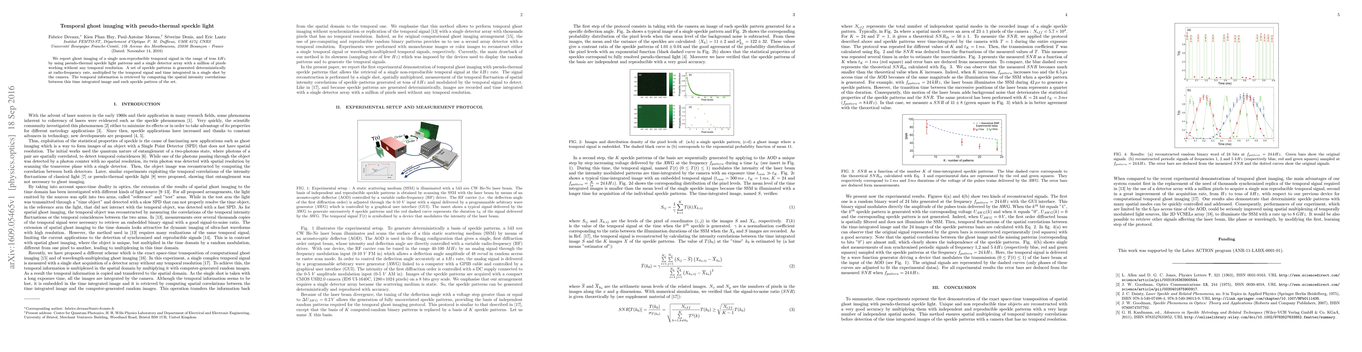 We report ghost imaging of a single non-reproducible temporal signal in the range of tens kHz by using pseudo-thermal speckle light patterns and a single detector array with a million of pixels working without any temporal resolution. A set of speckle patterns is generated deterministically at radio-frequency rate, multiplied by the temporal signal and time integrated in a single shot by the camera. The temporal information is retrieved by computing the spatial intensity correlations between this time integrated image and each speckle pattern of the set.