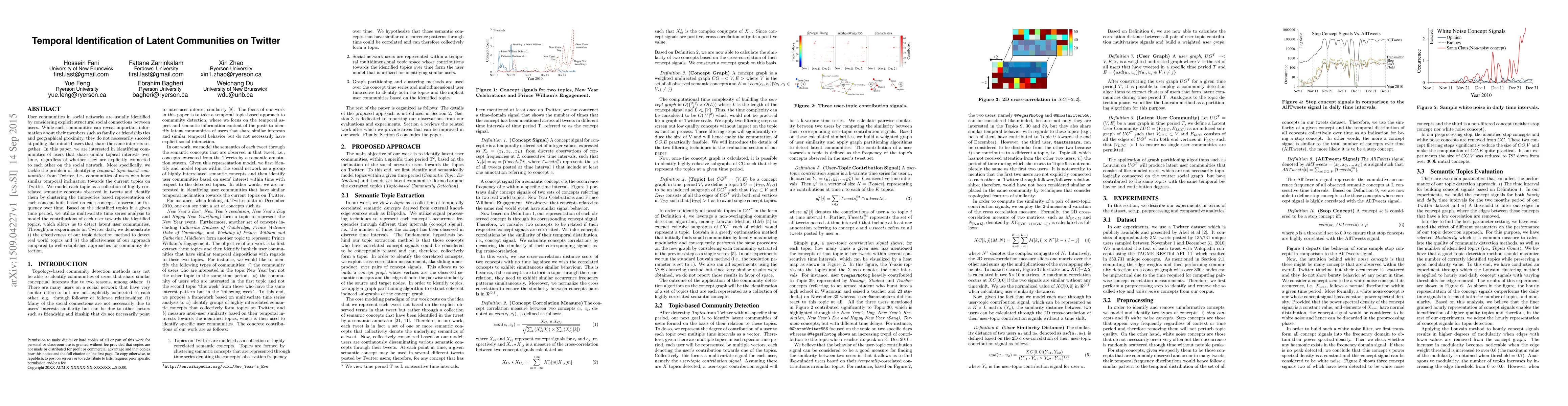 This paper proposes a method to identify temporal topic-based communities on Twitter by clustering time-series representations of emerging topics based on their frequency. The approach detects latent user communities sharing similar interests over time, demonstrating effectiveness in detecting real-world topics and outperforming established community detection methods.
