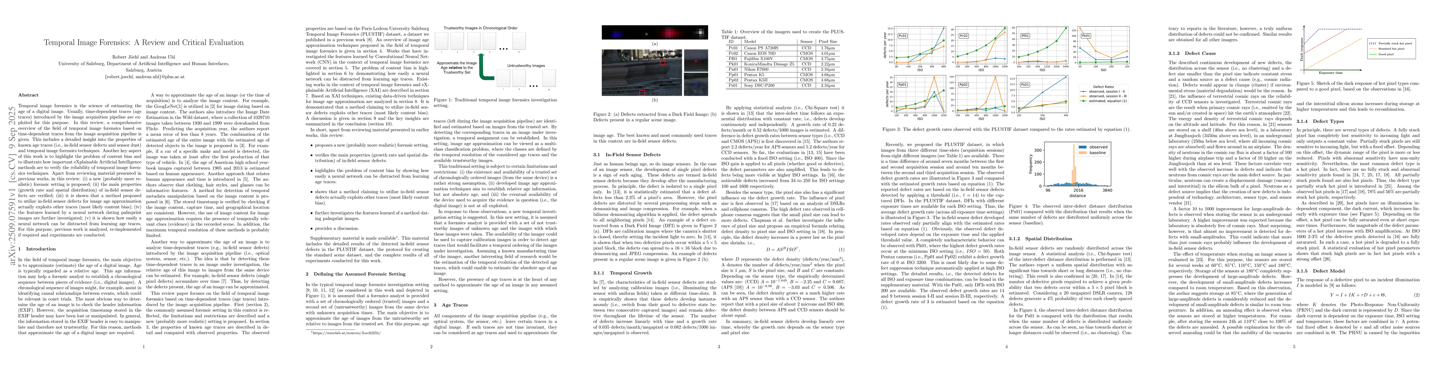 Temporal image forensics is the science of estimating the age of a digital image. Usually, time-dependent traces (age traces) introduced by the image acquisition pipeline are exploited for this purpose. In this review, a comprehensive overview of the field of temporal image forensics based on time-dependent traces from the image acquisition pipeline is given. This includes a detailed insight into the properties of known age traces (i.e., in-field sensor defects and sensor dust) and temporal image forensics techniques. Another key aspect of this work is to highlight the problem of content bias and to illustrate how important eXplainable Artificial Intelligence methods are to verify the reliability of temporal image forensics techniques. Apart from reviewing material presented in previous works, in this review: (i) a new (probably more realistic) forensic setting is proposed; (ii) the main properties (growth rate and spatial distribution) of in-field sensor defects are verified; (iii) it is shown that a method proposed to utilize in-field sensor defects for image age approximation actually exploits other traces (most likely content bias); (iv) the features learned by a neural network dating palmprint images are further investigated; (v) it is shown how easily a neural network can be distracted from learning age traces. For this purpose, previous work is analyzed, re-implemented if required and experiments are conducted.