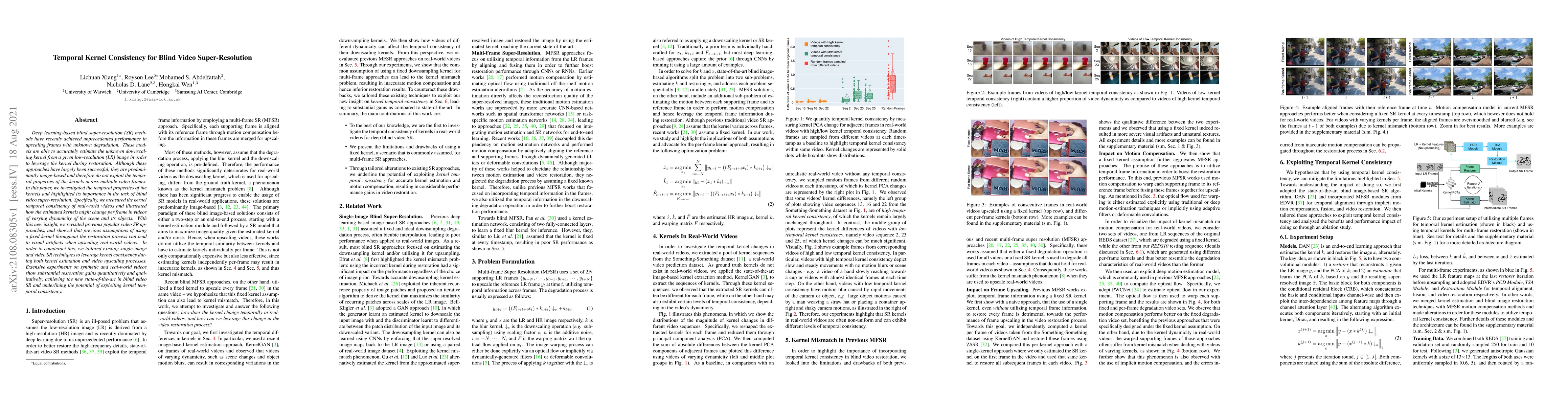 This paper explores the temporal consistency of downscaling kernels in blind video super-resolution, demonstrating that fixed kernels can cause artifacts. It proposes adapting SR techniques to leverage kernel consistency across frames, achieving state-of-the-art results in blind video upscaling.