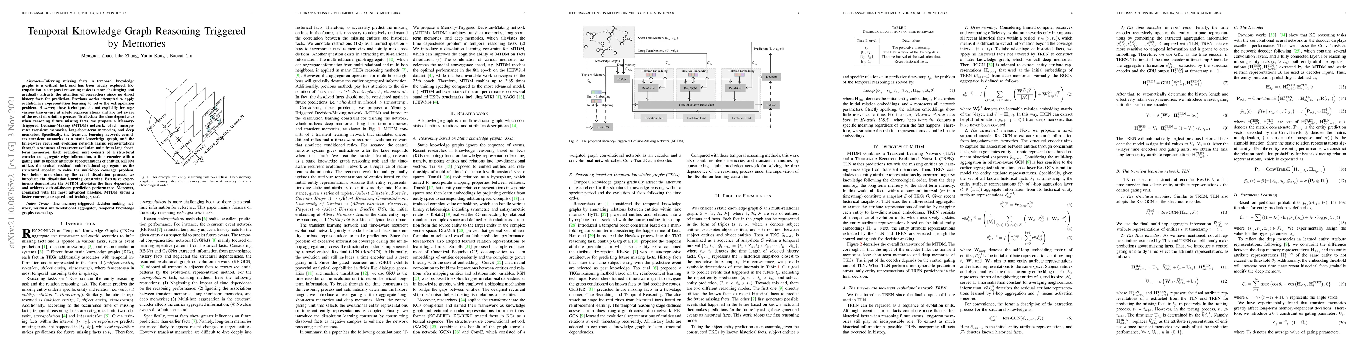 A new network called Memory-Triggered Decision-Making (MTDM) is proposed to improve temporal knowledge graph reasoning, reducing dependence on the length of history when predicting missing facts. The model achieves state-of-the-art performance and faster convergence compared to existing methods.