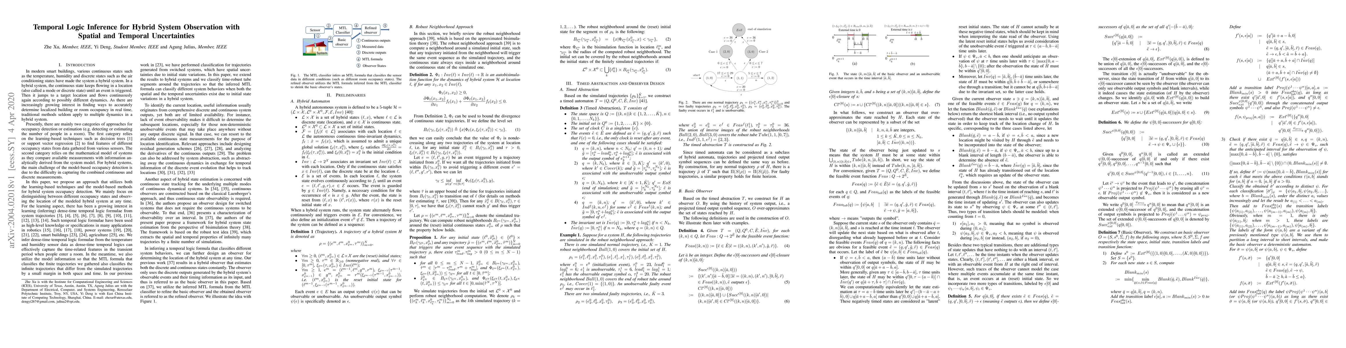 In this paper, we present a mechanism for building hybrid system observers to differentiate between specific positions of the hybrid system. The mechanism is designed through inferring metric temporal logic (MTL) formulae from simulated trajectories from the hybrid system. We first approximate the system behavior by simulating finitely many trajectories with timerobust tube segments around them. These time-robust tube segments account for both spatial and temporal uncertainties that exist in the hybrid system with initial state variations. The inferred MTL formulae classify different time-robust tube segments and thus can be used for classifying the hybrid system behaviors in a provably correct fashion. We implement our approach on a model of a smart building testbed to distinguish two cases of room occupancy.