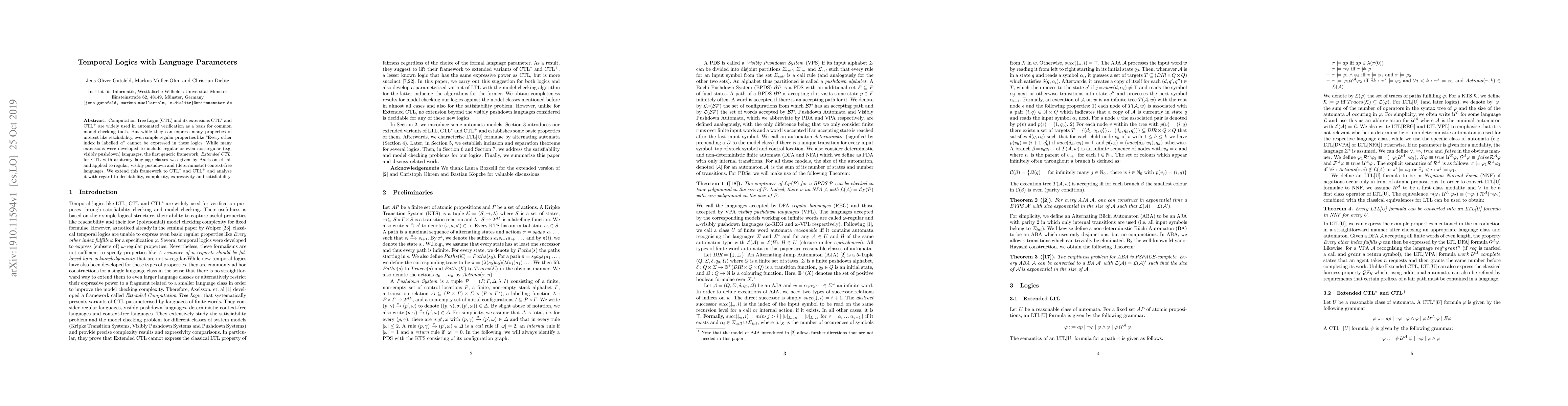 Researchers extended a framework for Computation Tree Logic (CTL) to include arbitrary language classes, enabling expression of regular properties like 'Every other index is labelled a' in CTL*. The extension analysis focuses on decidability, complexity, expressivity, and satisfiability.