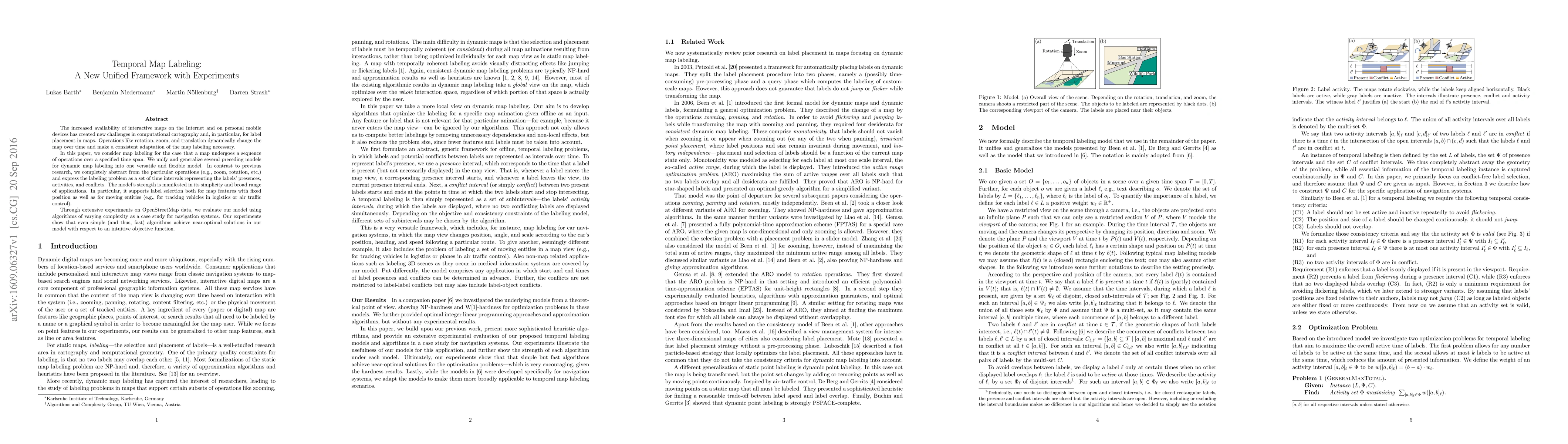 This paper presents a unified framework for temporal map labeling that abstracts from specific operations like zoom and rotation, instead focusing on time intervals for label presence and conflicts. Experiments on OpenStreetMap data demonstrate that simple algorithms can achieve near-optimal label placement for both static and moving entities.