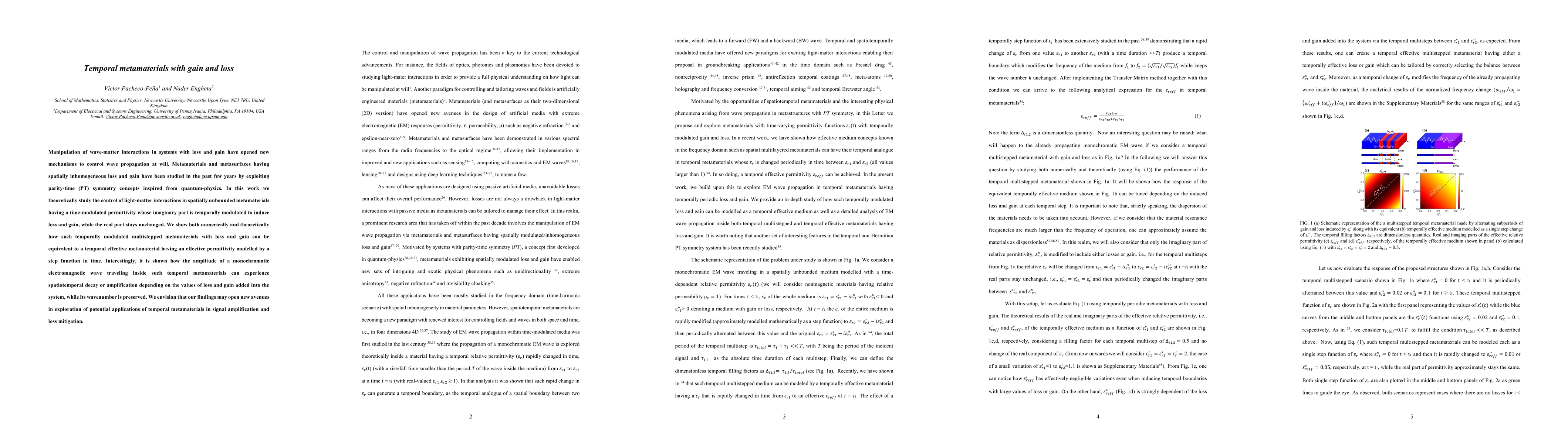 Researchers developed temporal metamaterials with gain and loss, showing they can control light-matter interactions in a way that preserves wavenumber while allowing for spatiotemporal decay or amplification of electromagnetic waves.
