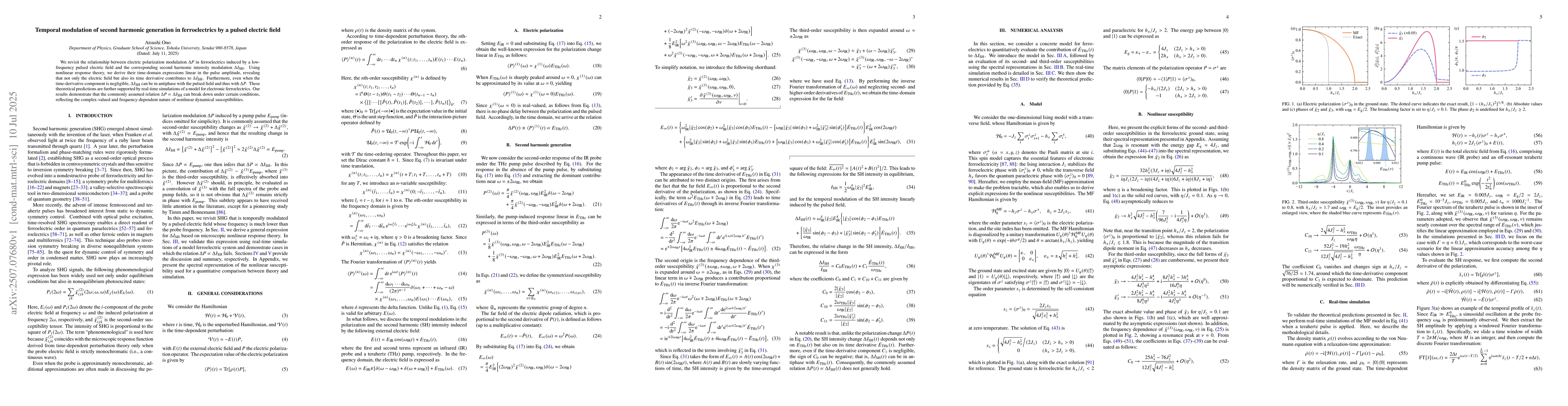 We revisit the relationship between electric polarization modulation $\Delta P$ in ferroelectrics induced by a low-frequency pulsed electric field and the corresponding second harmonic intensity modulation $\Delta I_{\mathrm{SH}}$. Using nonlinear response theory, we derive their time-domain expressions linear in the pulse amplitude, revealing that not only the electric field but also its time derivative contributes to $\Delta I_{\mathrm{SH}}$. Furthermore, even when the time-derivative component is negligible, $\Delta I_{\mathrm{SH}}$ can be in antiphase with the pulsed field and thus with $\Delta P$. These theoretical predictions are further supported by real-time simulations of a model for electronic ferroelectrics. Our results demonstrate that the commonly assumed relation $\Delta P \propto \Delta I_{\mathrm{SH}}$ can break down under certain conditions, reflecting the complex-valued and frequency-dependent nature of nonlinear dynamical susceptibilities.
