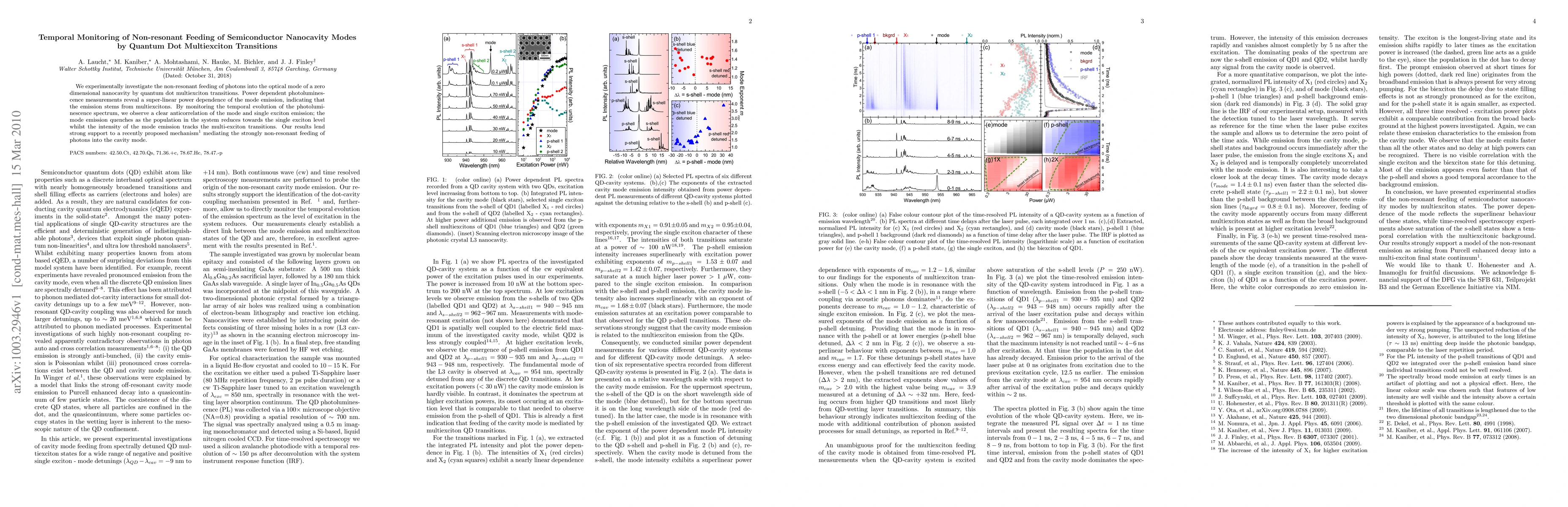 This paper investigates the non-resonant feeding of photons into a semiconductor nanocavity's optical mode via quantum dot multiexciton transitions. The study reveals a super-linear power dependence in mode emission, indicating multiexciton involvement, and observes an anticorrelation between mode and single exciton emissions, supporting a proposed non-resonant feeding mechanism.