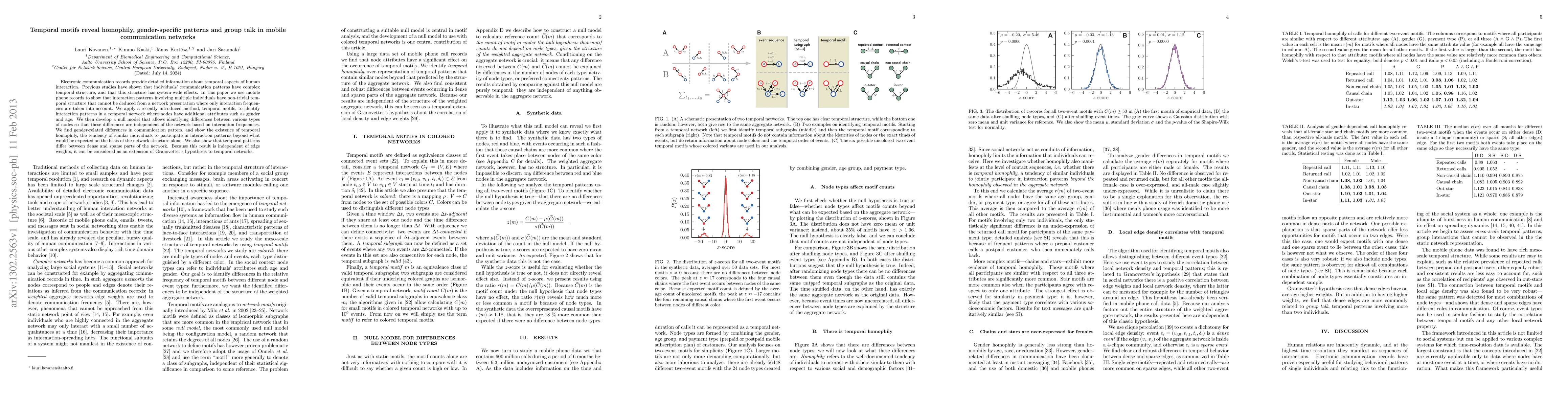 This paper uses mobile phone records to reveal complex temporal interaction patterns in communication networks, identifying gender-specific communication differences and temporal homophily. It demonstrates that temporal motifs extend Granovetter's hypothesis to temporal networks, showing distinct patterns in dense versus sparse network areas.
