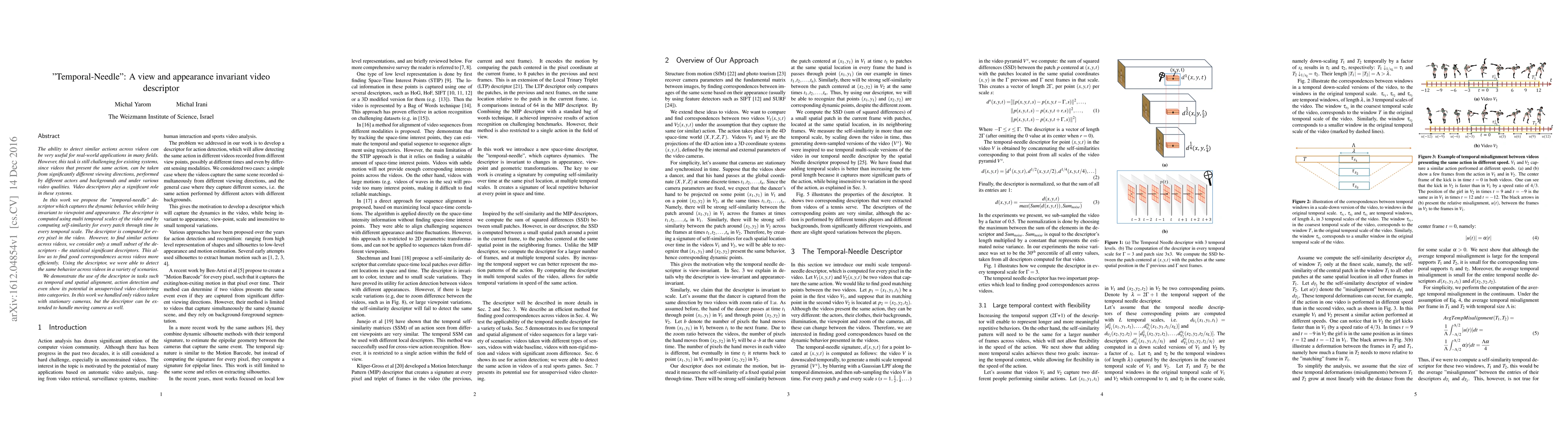 Researchers introduced a new video descriptor called Temporal-Needle that can detect similar actions across videos despite varying viewpoints, actors, and backgrounds. The descriptor enables efficient action detection and clustering in various applications.