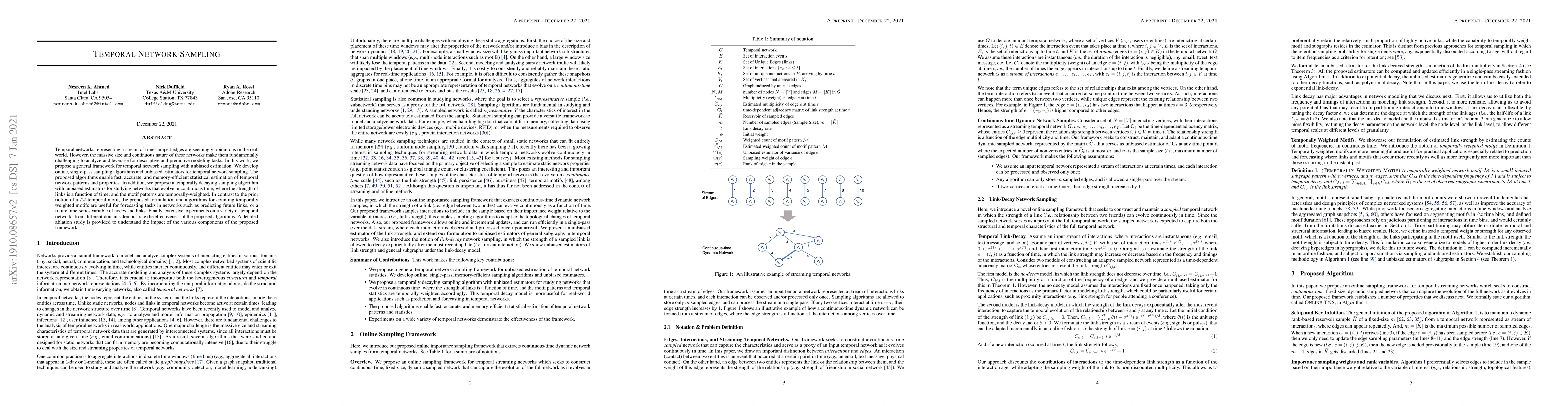 This paper proposes a framework for temporal network sampling that enables fast, accurate, and memory-efficient statistical estimation of network patterns and properties. It introduces online algorithms and unbiased estimators for both static and evolving networks, including a temporally decaying sampling method for forecasting future links and time-series variables.