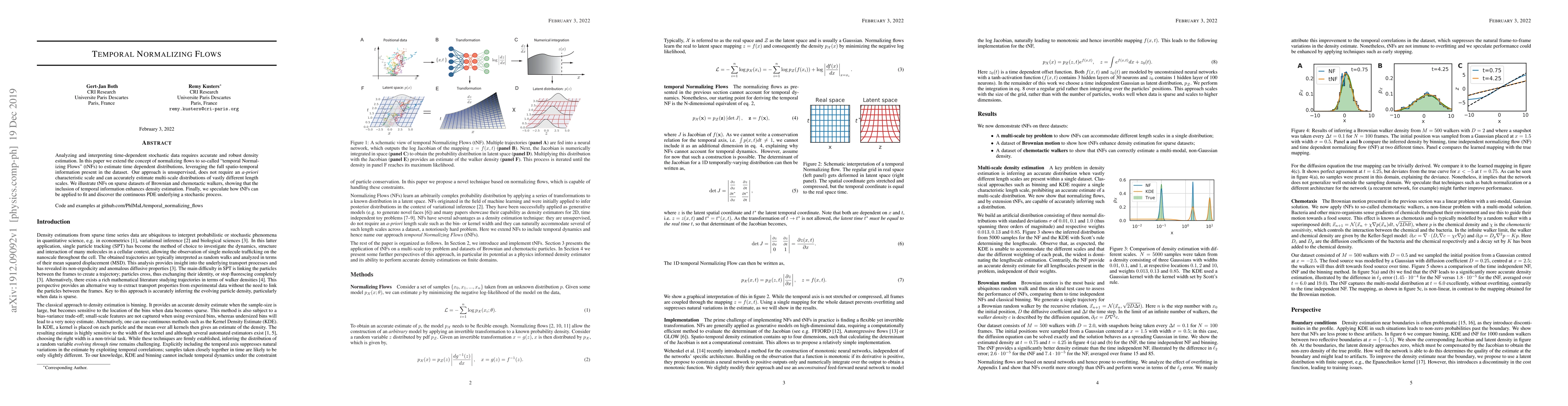 Analyzing and interpreting time-dependent stochastic data requires accurate and robust density estimation. In this paper we extend the concept of normalizing flows to so-called temporal Normalizing Flows (tNFs) to estimate time dependent distributions, leveraging the full spatio-temporal information present in the dataset. Our approach is unsupervised, does not require an a-priori characteristic scale and can accurately estimate multi-scale distributions of vastly different length scales. We illustrate tNFs on sparse datasets of Brownian and chemotactic walkers, showing that the inclusion of temporal information enhances density estimation. Finally, we speculate how tNFs can be applied to fit and discover the continuous PDE underlying a stochastic process.