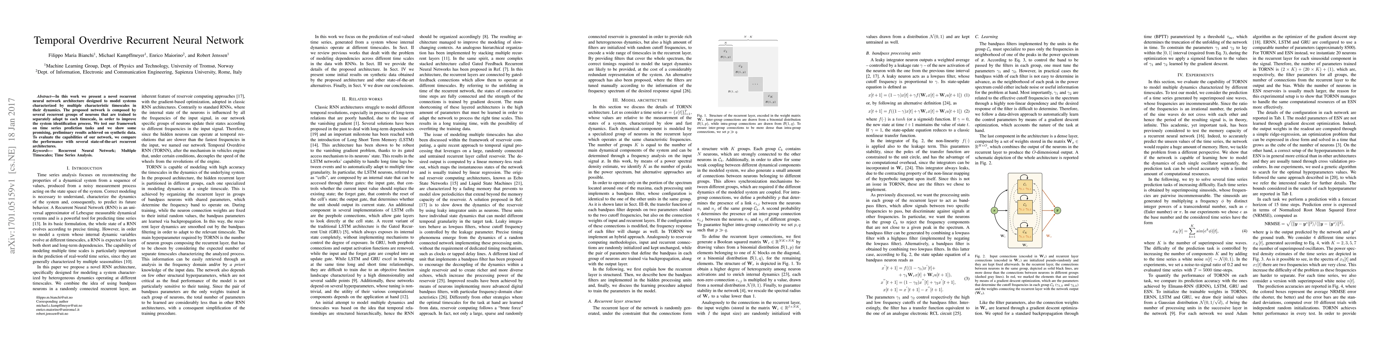 The Temporal Overdrive Recurrent Neural Network is designed to model systems with multiple characteristic timescales, employing separate recurrent groups for each timescale to improve system identification. Preliminary results on synthetic data show promising performance, outperforming several state-of-the-art recurrent architectures in time series prediction tasks.