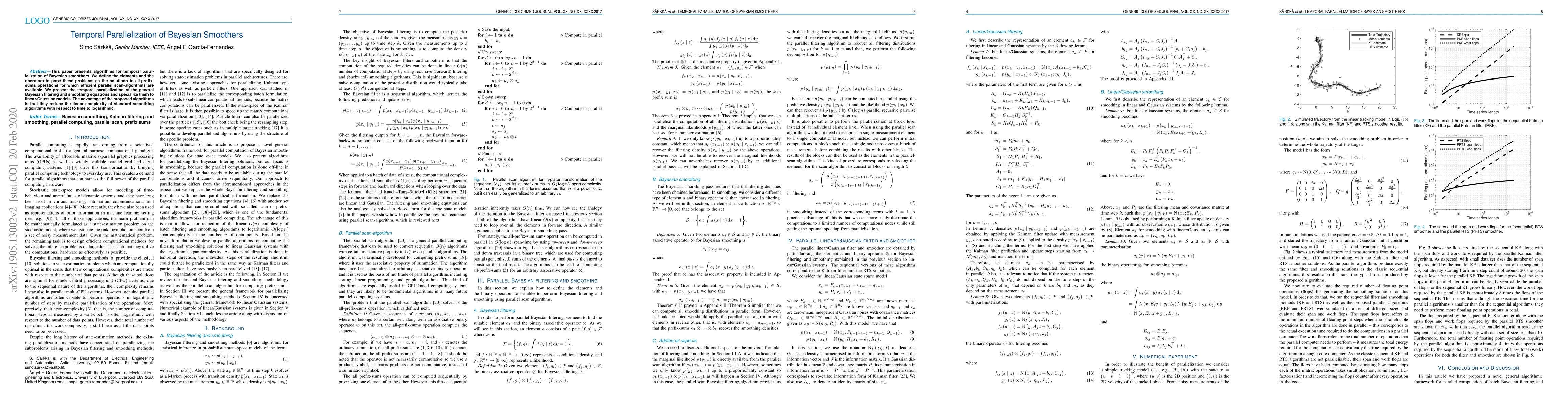 This paper introduces algorithms for temporally parallelizing Bayesian smoothers, reducing the time complexity of standard smoothing from linear to logarithmic by leveraging efficient parallel scan-algorithms for all-prefix-sums operations, particularly in linear/Gaussian models.