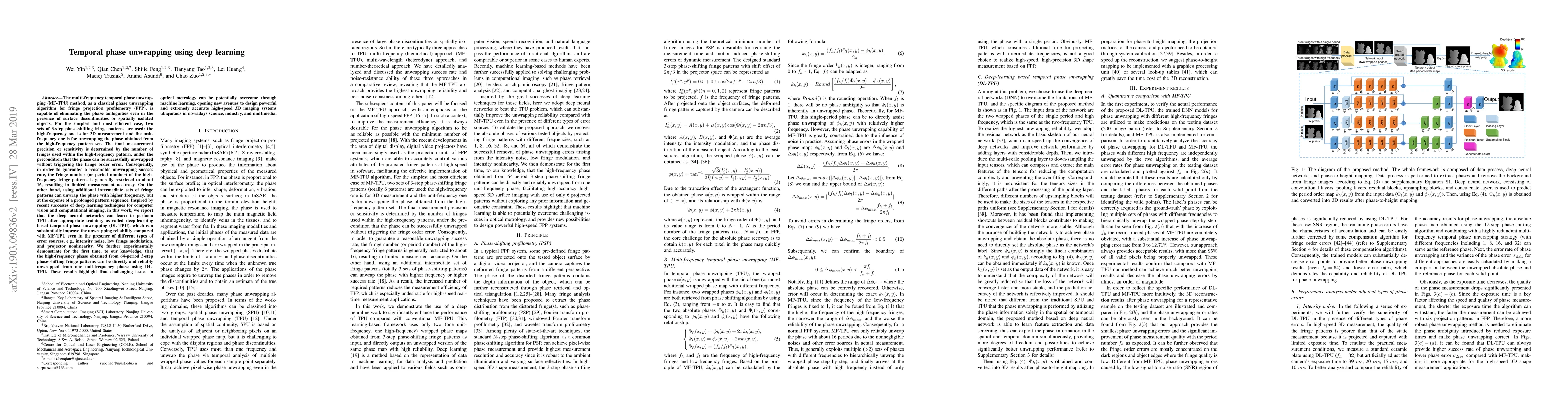 This paper proposes a deep-learning based temporal phase unwrapping (DL-TPU) method to improve the reliability of phase unwrapping in fringe projection profilometry, achieving higher accuracy and success rates compared to traditional multi-frequency methods, even under challenging conditions like noise and low modulation. The method demonstrates the ability to unwrap high-frequency phase from 64-period fringe patterns using a single low-frequency phase.