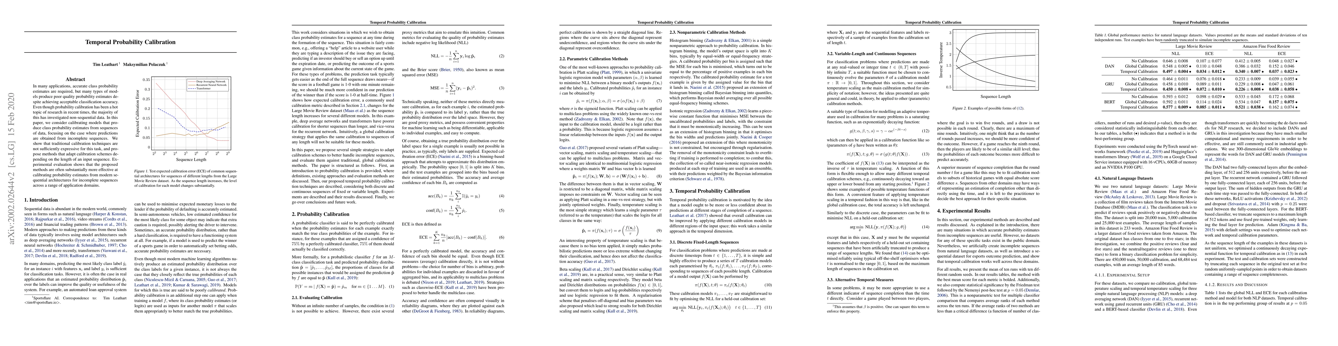 This paper addresses the challenge of calibrating probability estimates from sequential models, especially for incomplete sequences, proposing adaptive calibration methods that improve accuracy over traditional techniques. Experimental results show significant improvements across various application domains.
