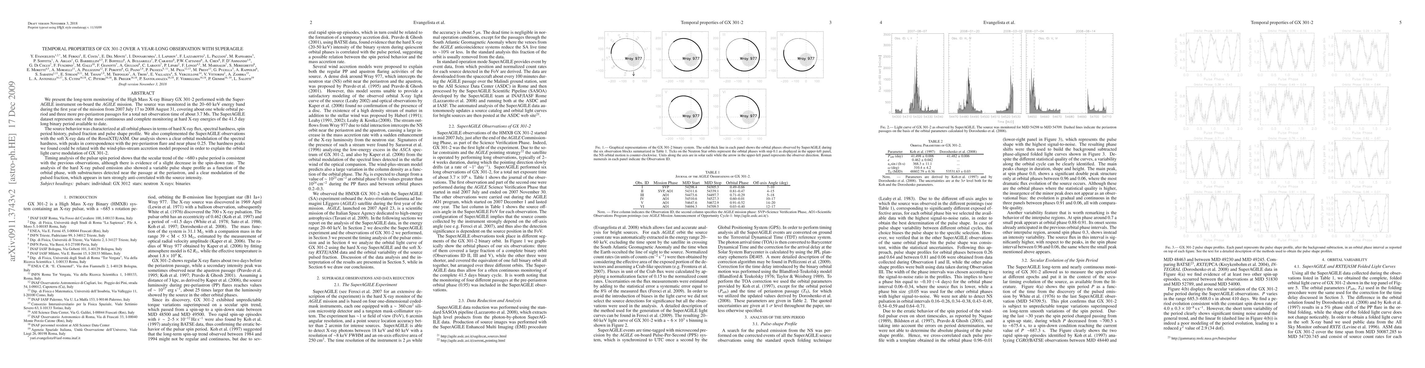 We present the long-term monitoring of the High Mass X-ray Binary GX 301-2 performed with the SuperAGILE instrument on-board the AGILE mission. The source was monitored in the 20-60 keV energy band during the first year of the mission from 2007 July 17 to 2008 August 31, covering about one whole orbital period and three more pre-periastron passages for a total net observation time of about 3.7 Ms. The SuperAGILE dataset represents one of the most continuous and complete monitoring at hard X-ray energies of the 41.5 day long binary period available to date. The source behavior was characterized at all orbital phases in terms of hard X-ray flux, spectral hardness, spin period history, pulsed fraction and pulse shape profile. We also complemented the SuperAGILE observations with the soft X-ray data of the RossiXTE/ASM. Our analysis shows a clear orbital modulation of the spectral hardness, with peaks in correspondence with the pre-periastron flare and near phase 0.25. The hardness peaks we found could be related with the wind-plus-stream accretion model proposed in order to explain the orbital light curve modulation of GX 301-2. Timing analysis of the pulsar spin period shows that the secular trend of the about 680 s pulse period is consistent with the previous observations, although there is evidence of a slight decrease in the spin-down rate. The analysis of the hard X-ray pulsed emission also showed a variable pulse shape profile as a function of the orbital phase, with substructures detected near the passage at the periastron, and a clear modulation of the pulsed fraction, which appears in turn strongly anti-correlated with the source intensity.