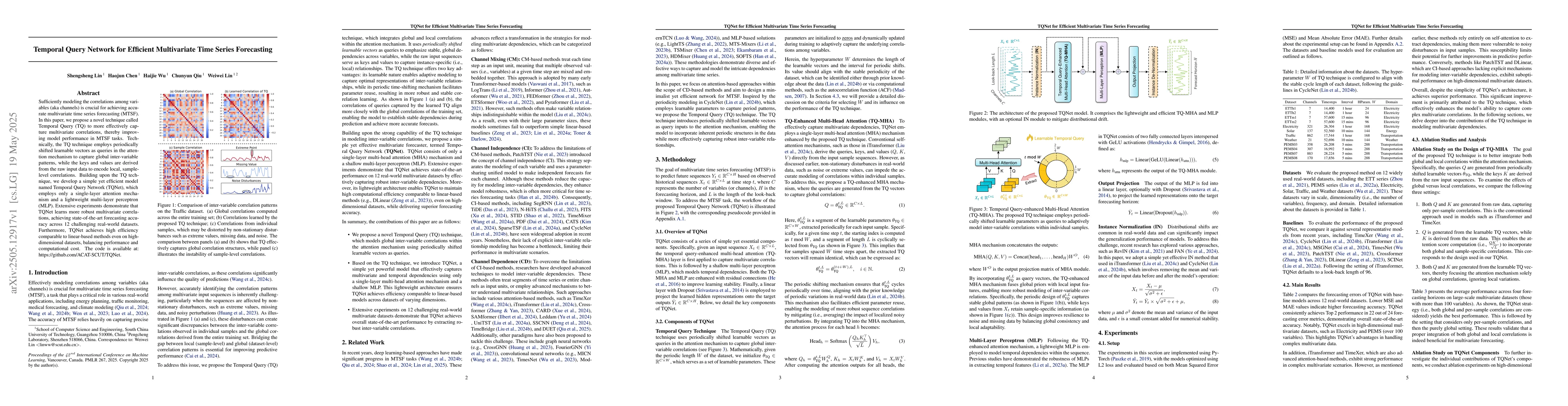 Researchers propose a new technique called Temporal Query (TQ) to improve multivariate time series forecasting by capturing global and local correlations between variables. Their model, TQNet, achieves state-of-the-art performance while maintaining computational efficiency.