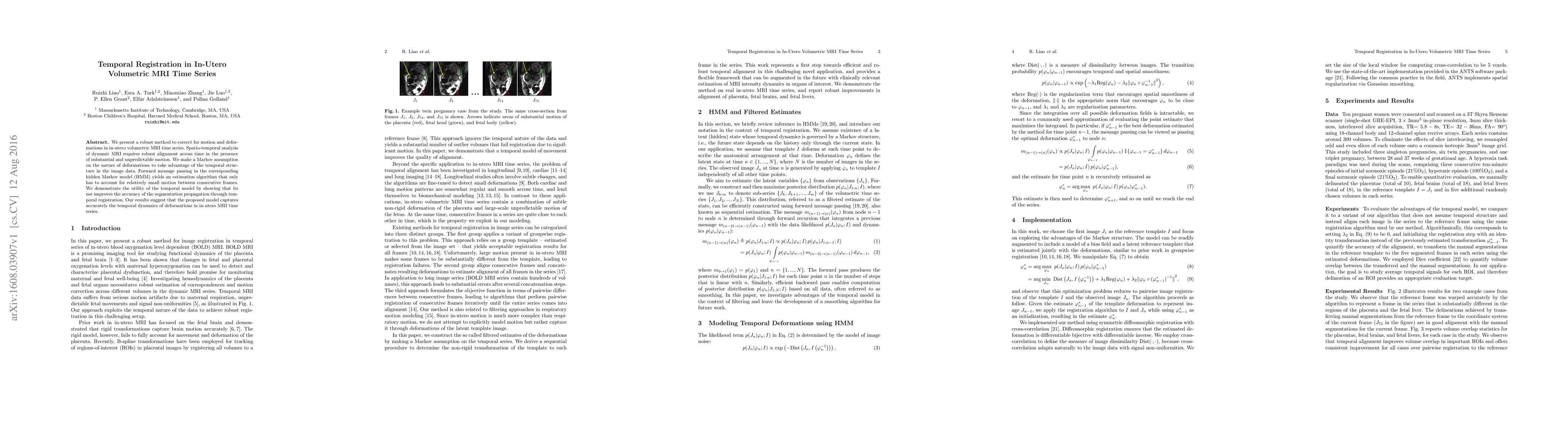 A new method for correcting motion in in-utero MRI images improves segmentation accuracy through temporal registration, using a hidden Markov model to capture the dynamic nature of fetal deformations.
