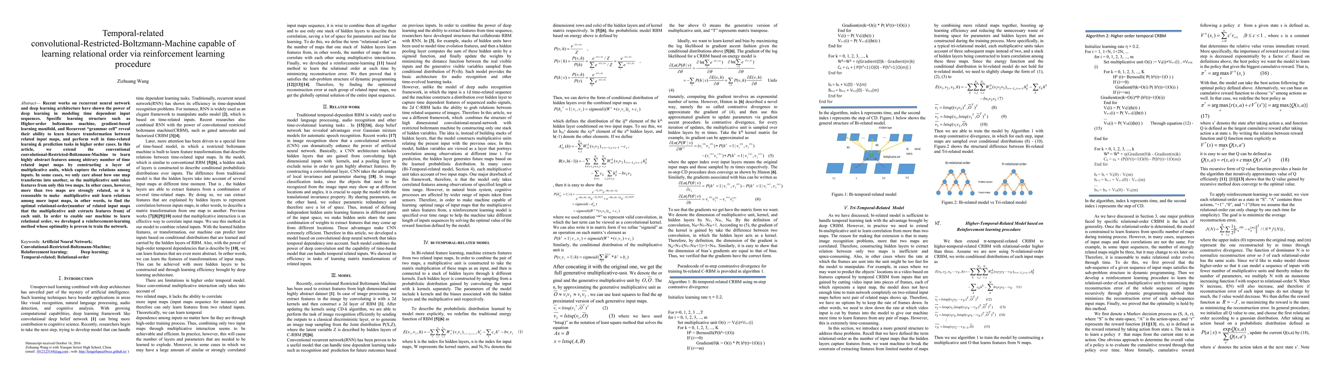 In this article, we extend the conventional framework of convolutional-Restricted-Boltzmann-Machine to learn highly abstract features among abitrary number of time related input maps by constructing a layer of multiplicative units, which capture the relations among inputs. In many cases, more than two maps are strongly related, so it is wise to make multiplicative unit learn relations among more input maps, in other words, to find the optimal relational-order of each unit. In order to enable our machine to learn relational order, we developed a reinforcement-learning method whose optimality is proven to train the network.
