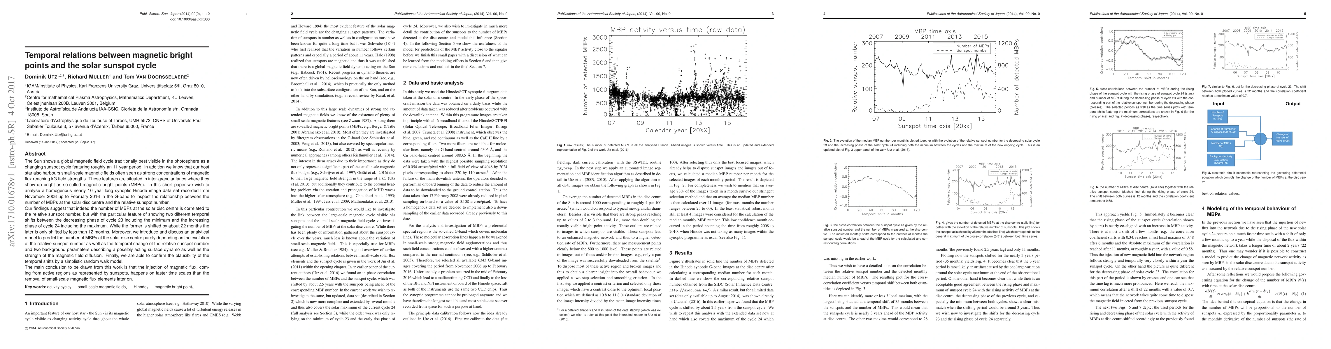 The Sun shows a global magnetic field cycle traditionally best visible in the photosphere as a changing sunspot cycle featuring roughly an 11 year period. In addition we know that our host star also harbours small-scale magnetic fields often seen as strong concentrations of magnetic flux reaching kG field strengths. These features are situated in inter-granular lanes where they show up bright as so-called magnetic bright points (MBPs). In this short paper we wish to analyse a homogenous nearly 10 year long synoptic Hinode image data set recorded from November 2006 up to February 2016 in the G-band to inspect the relationship between the number of MBPs at the solar disc centre and the relative sunspot number. Our findings suggest that indeed the number of MBPs at the solar disc centre is correlated to the relative sunspot number, but with the particular feature of showing two different temporal shifts between the decreasing phase of cycle 23 including the minimum and the increasing phase of cycle 24 including the maximum. While the former is shifted by about 22 months the later is only shifted by less than 12 months. Moreover, we introduce and discuss an analytical model to predict the number of MBPs at the solar disc centre purely depending on the evolution of the relative sunspot number as well as the temporal change of the relative sunspot number and two background parameters describing a possibly acting surface dynamo as well as the strength of the magnetic field diffusion. Finally, we are able to confirm the plausibility of the temporal shifts by a simplistic random walk model. The main conclusion to be drawn from this work is that the injection of magnetic flux, coming from active regions as represented by sunspots, happens on faster time scales than the removal of small-scale magnetic flux elements later on.