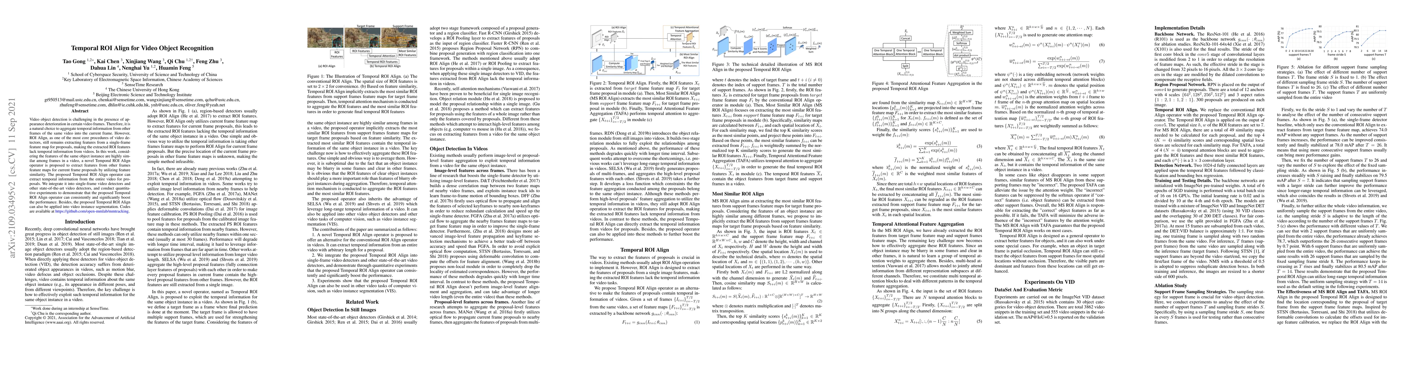 A new Temporal RoI Align operator is proposed to improve video object recognition by utilizing feature similarity across frames, leading to significant performance boosts in detection and segmentation tasks.