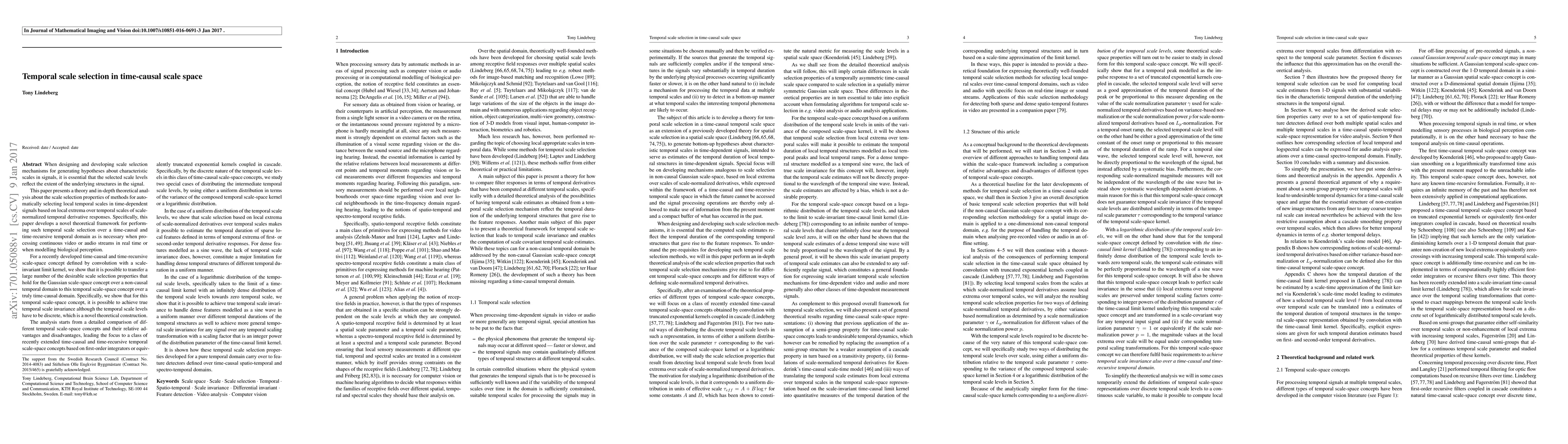 This paper develops a theoretical framework for selecting temporal scales in time-dependent signals based on local extrema of scale-normalized temporal derivative responses. It demonstrates how desirable scale selection properties from Gaussian scale-space can be transferred to a time-causal scale-space, achieving true temporal scale invariance in a discrete temporal scale level.
