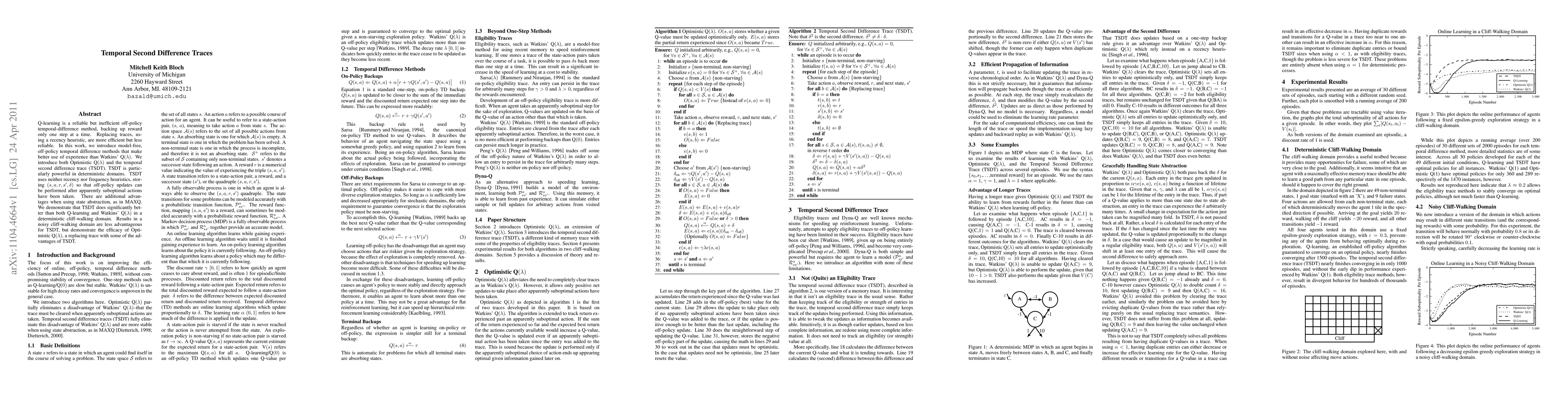Q-learning is a reliable but inefficient off-policy temporal-difference method, backing up reward only one step at a time. Replacing traces, using a recency heuristic, are more efficient but less reliable. In this work, we introduce model-free, off-policy temporal difference methods that make better use of experience than Watkins' Q(\lambda). We introduce both Optimistic Q(\lambda) and the temporal second difference trace (TSDT). TSDT is particularly powerful in deterministic domains. TSDT uses neither recency nor frequency heuristics, storing (s,a,r,s',\delta) so that off-policy updates can be performed after apparently suboptimal actions have been taken. There are additional advantages when using state abstraction, as in MAXQ. We demonstrate that TSDT does significantly better than both Q-learning and Watkins' Q(\lambda) in a deterministic cliff-walking domain. Results in a noisy cliff-walking domain are less advantageous for TSDT, but demonstrate the efficacy of Optimistic Q(\lambda), a replacing trace with some of the advantages of TSDT.