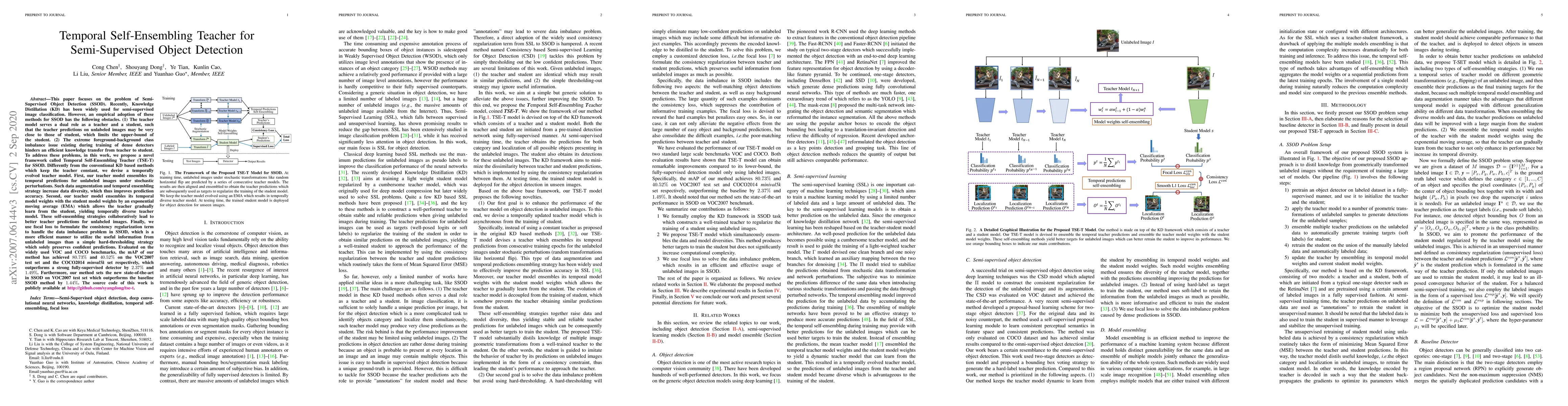This paper proposes a Temporal Self-Ensembling Teacher (TSE-T) method for Semi-Supervised Object Detection (SSOD), addressing teacher-student duality and class imbalance issues. The method employs temporal self-ensembling and an exponential moving average to enhance teacher predictions, achieving state-of-the-art results on VOC and COCO benchmarks.