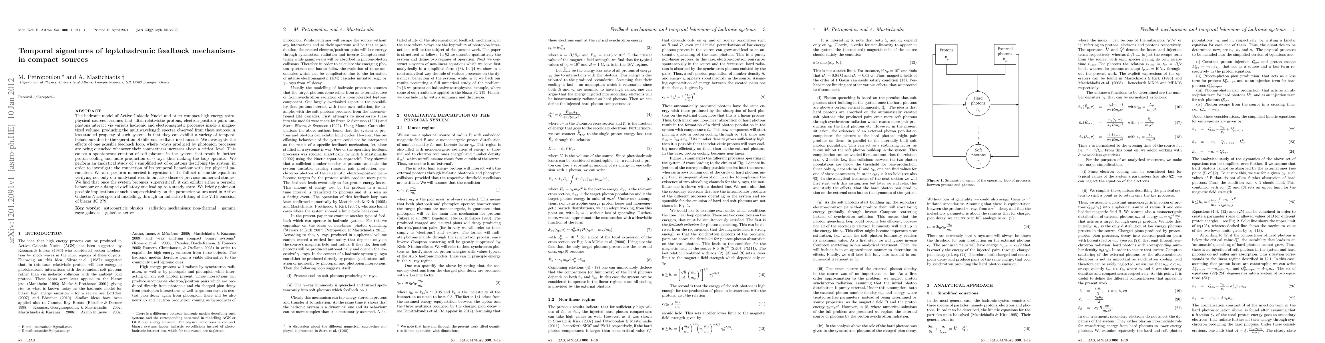 The hadronic model of Active Galactic Nuclei and other compact high energy astrophysical sources assumes that ultra-relativistic protons, electron-positron pairs and photons interact via various hadronic and electromagnetic processes inside a magnetized volume, producing the multiwavelength spectra observed from these sources. A less studied property of such systems is that they can exhibit a variety of temporal behaviours due to the operation of different feedback mechanisms. We investigate the effects of one possible feedback loop, where \gamma-rays produced by photopion processes are being quenched whenever their compactness increases above a critical level. This causes a spontaneous creation of soft photons in the system that result in further proton cooling and more production of \gamma-rays, thus making the loop operate. We perform an analytical study of a simplified set of equations describing the system, in order to investigate the connection of its temporal behaviour with key physical parameters. We also perform numerical integration of the full set of kinetic equations verifying not only our analytical results but also those of previous numerical studies. We find that once the system becomes `supercritical', it can exhibit either a periodic behaviour or a damped oscillatory one leading to a steady state. We briefly point out possible implications of such a supercriticality on the parameter values used in Active Galactic Nuclei spectral modelling, through an indicative fitting of the VHE emission of blazar 3C 279.