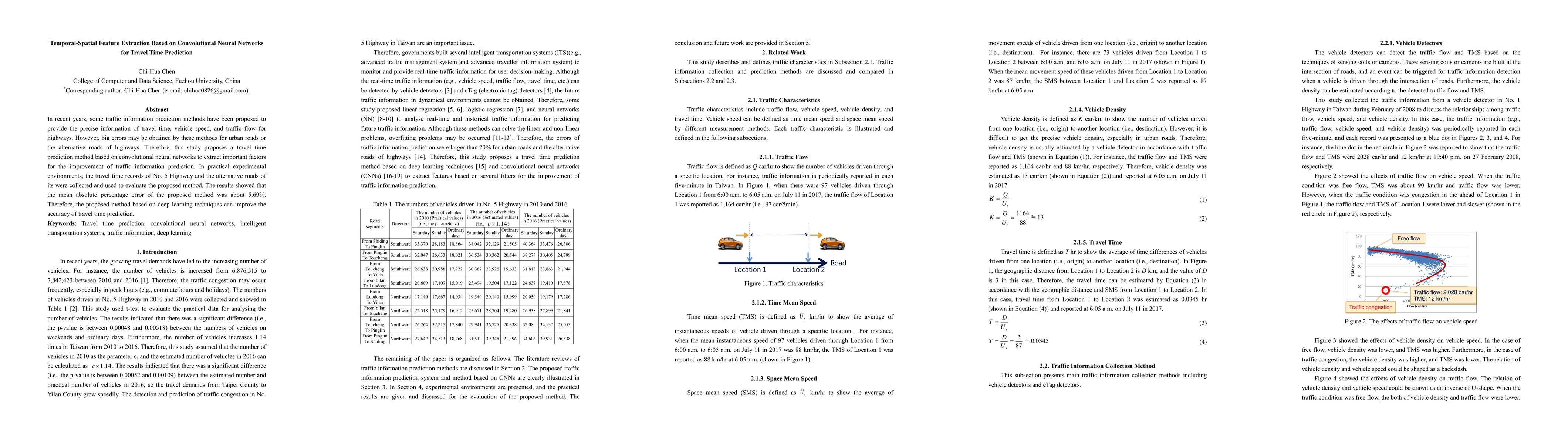 This study introduces a convolutional neural network-based method for travel time prediction, aiming to improve accuracy for urban roads. Experimental results on No. 5 Highway and its alternative routes show a mean absolute percentage error of 5.69%, demonstrating the effectiveness of the proposed deep learning approach.