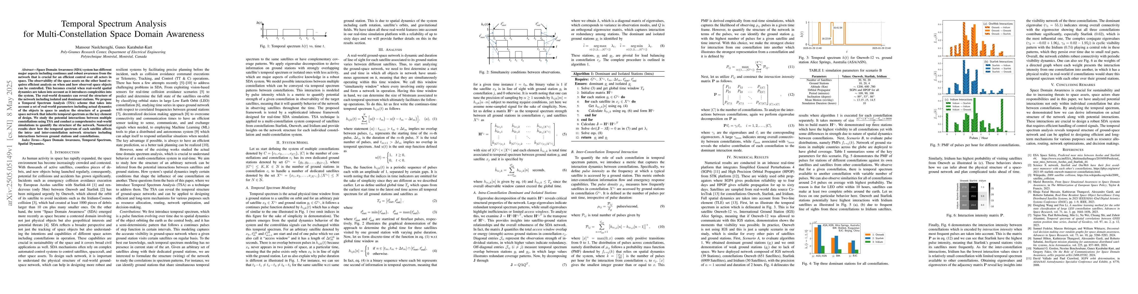 This paper proposes a Temporal Spectrum Analysis (TSA) scheme to analyze space domain awareness, considering real-world dynamics of objects in space to understand network structure. It shows how the temporal spectrum affects intra- and inter-constellation network interactions.