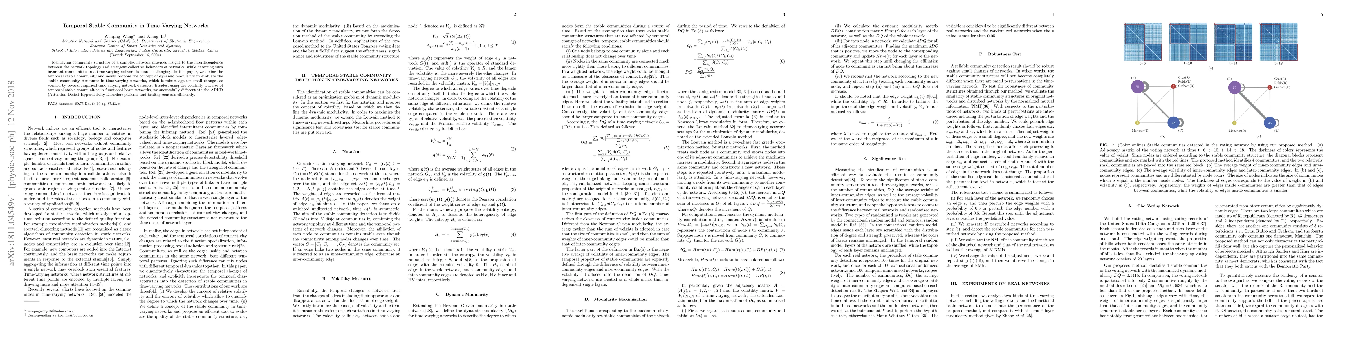 This paper introduces the concept of temporal stable communities and dynamic modularity to identify invariant structures in time-varying networks, demonstrating robustness through empirical datasets. It also applies these concepts to differentiate ADHD patients from healthy controls using functional brain networks.