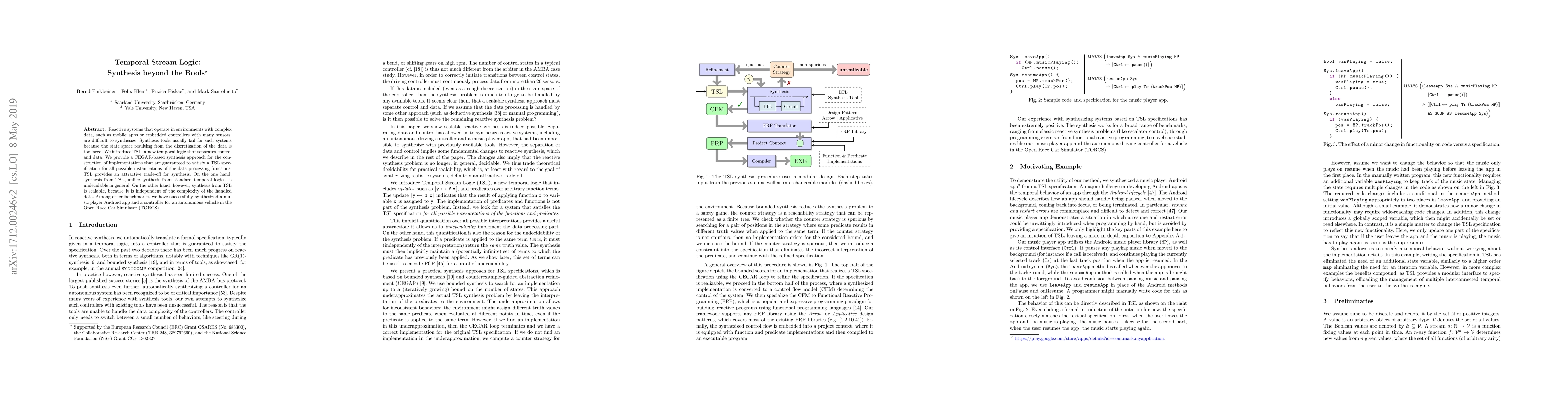 This paper introduces Temporal Stream Logic (TSL), a new temporal logic that separates control and data to facilitate synthesis of reactive systems. The proposed CEGAR-based synthesis approach ensures implementations satisfy TSL specifications regardless of data complexity, demonstrating scalability and successful application to a music player and an autonomous vehicle controller.