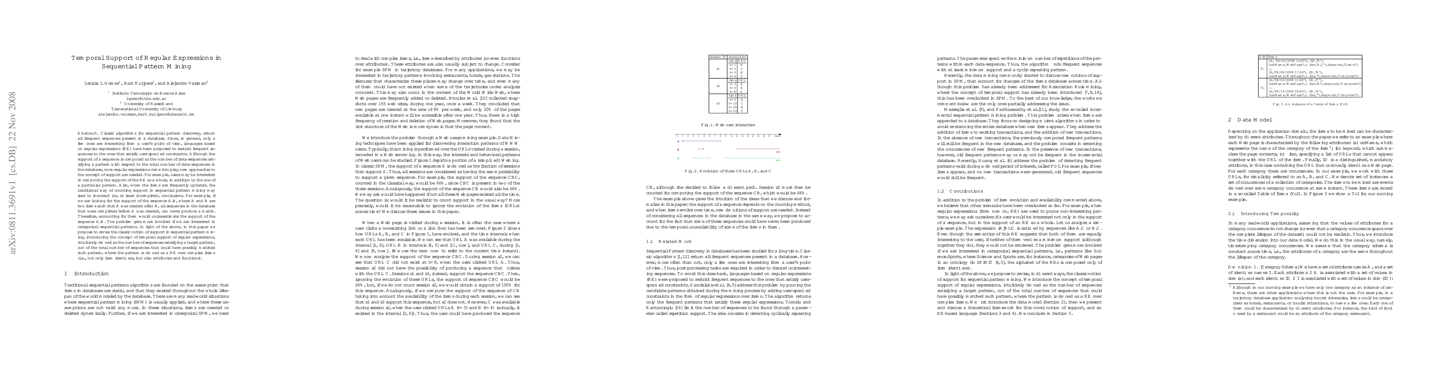 This paper proposes a revised notion of support in sequential pattern mining, introducing temporal support of regular expressions to address the limitations of traditional support in dynamic and categorical data environments. The temporal support measures the relevance of complex patterns defined by regular expressions over evolving data sequences.