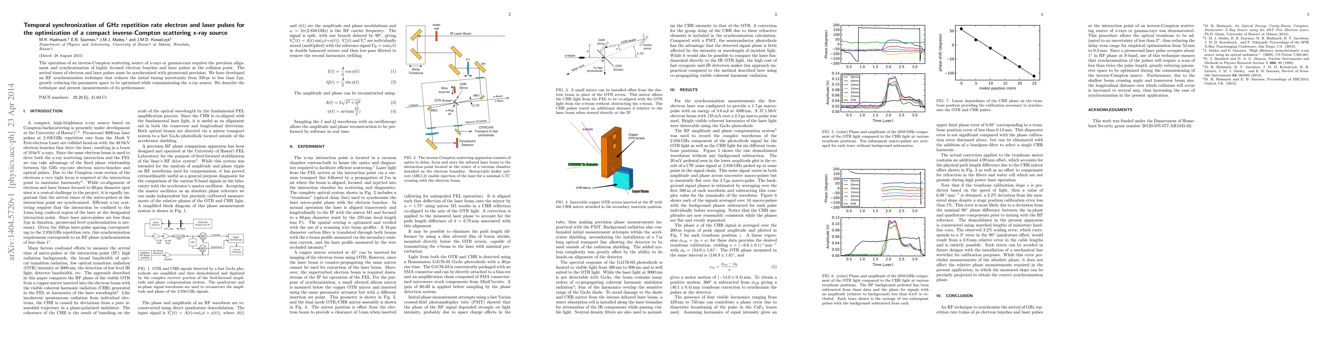 The operation of an inverse-Compton scattering source of x-rays or gamma-rays requires the precision alignment and synchronization of highly focused electron bunches and laser pulses at the collision point. The arrival times of electron and laser pulses must be synchronized with picosecond precision. We have developed an RF synchronization technique that reduces the initial timing uncertainty from 350 ps to less than 2 ps, greatly reducing the parameter space to be optimized while commissioning the x-ray source. We describe the technique and present measurements of its performance.
