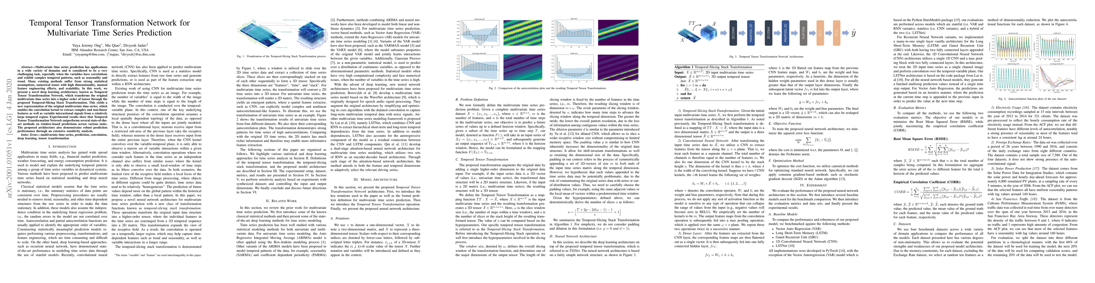 This paper introduces a novel deep learning architecture called the Temporal Tensor Transformation Network for improving multivariate time series prediction. It transforms time series data into a higher-order tensor, enabling the extraction of complex features and interactions, and outperforms existing methods in various prediction tasks.