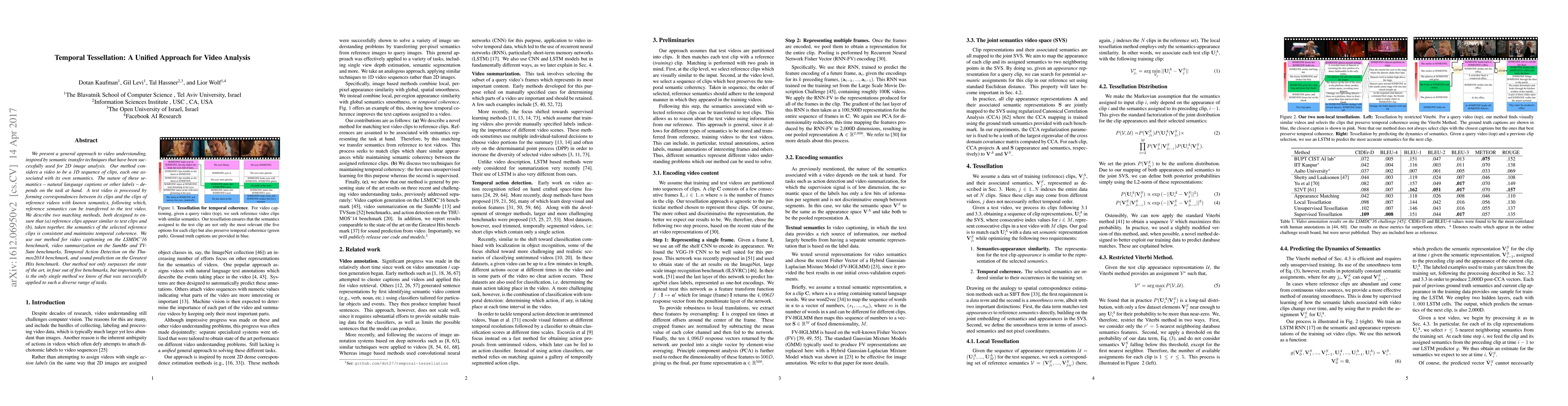 This paper introduces Temporal Tessellation, a unified approach for video analysis that transfers semantics from reference videos to test videos through matching clips. It achieves state-of-the-art results in four out of five benchmarks.