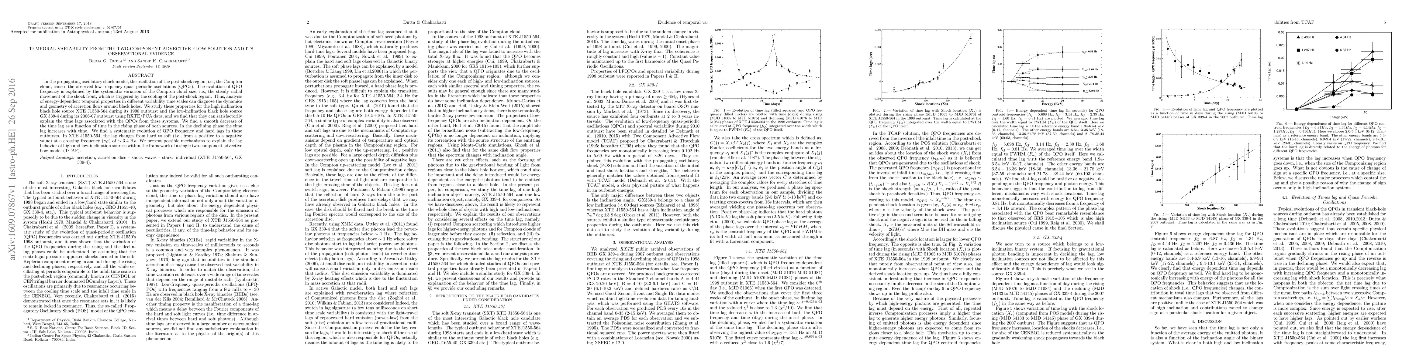 This paper investigates the temporal variability of quasi-periodic oscillations (QPOs) in black hole accretion flows, using RXTE/PCA data from XTE J1550-564 and GX 339-4. It finds that the observed time lags and QPO frequency evolution can be explained by the dynamics of the Compton cloud and the two-component advective flow model (TCAF).